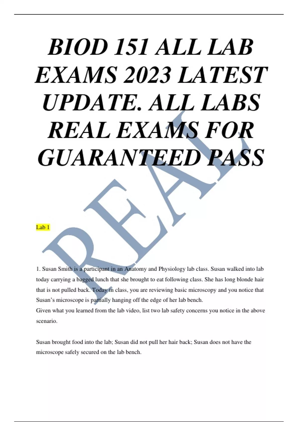 1. Susan Smith is a participant in an Anatomy and Physiology lab class. Susan walked into lab