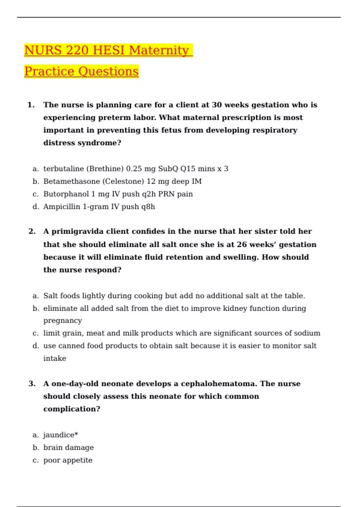 nurs 220 hesi maternity practice questions 2023