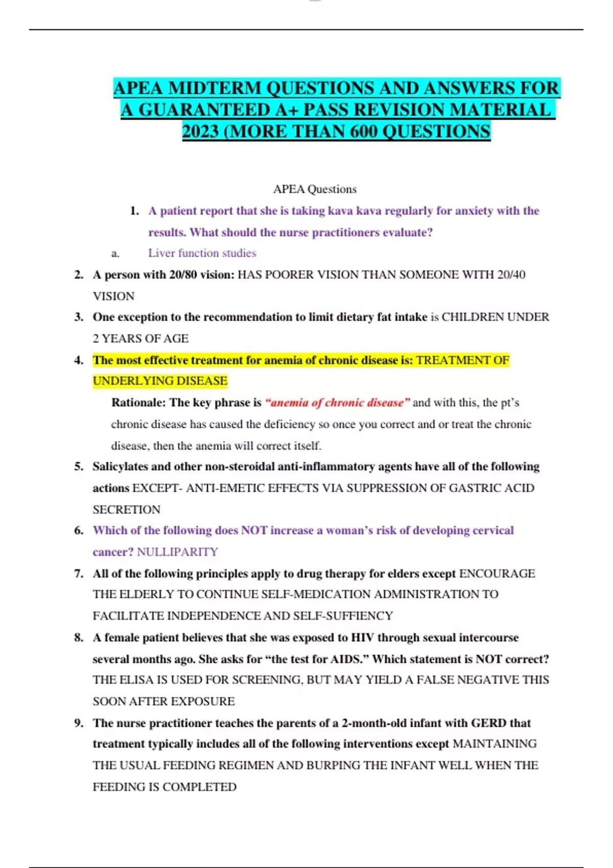 APEA MIDTERM QUESTIONS AND ANSWERS FOR A GUARANTEED A+ PASS REVISION MATERIAL 2023 (MORE THAN 600 QUESTIONS)