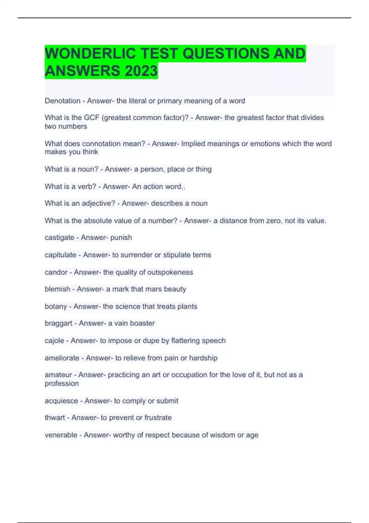WONDERLIC TEST QUESTIONS AND ANSWERS 2023