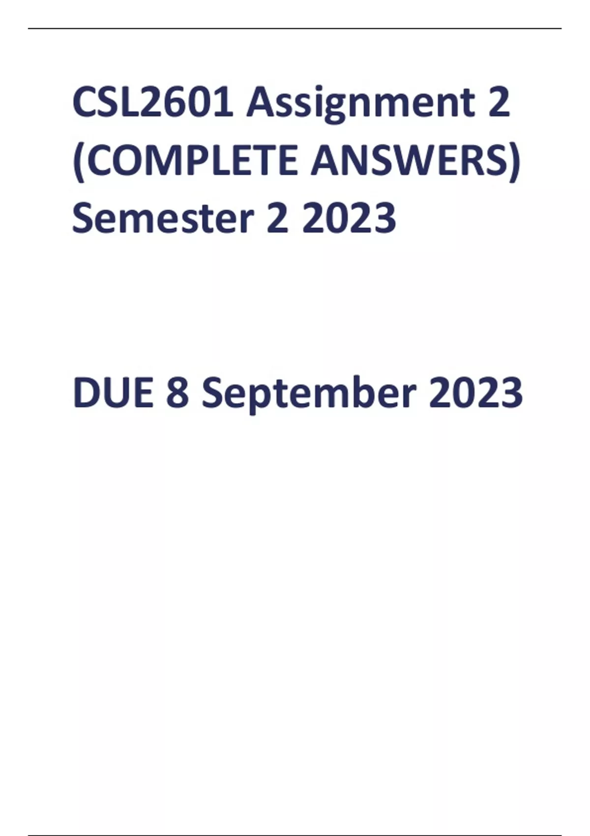 , CSL2601 Assignment 2 (COMPLETE ANSWERS) Semester 2 2023 - DUE 8