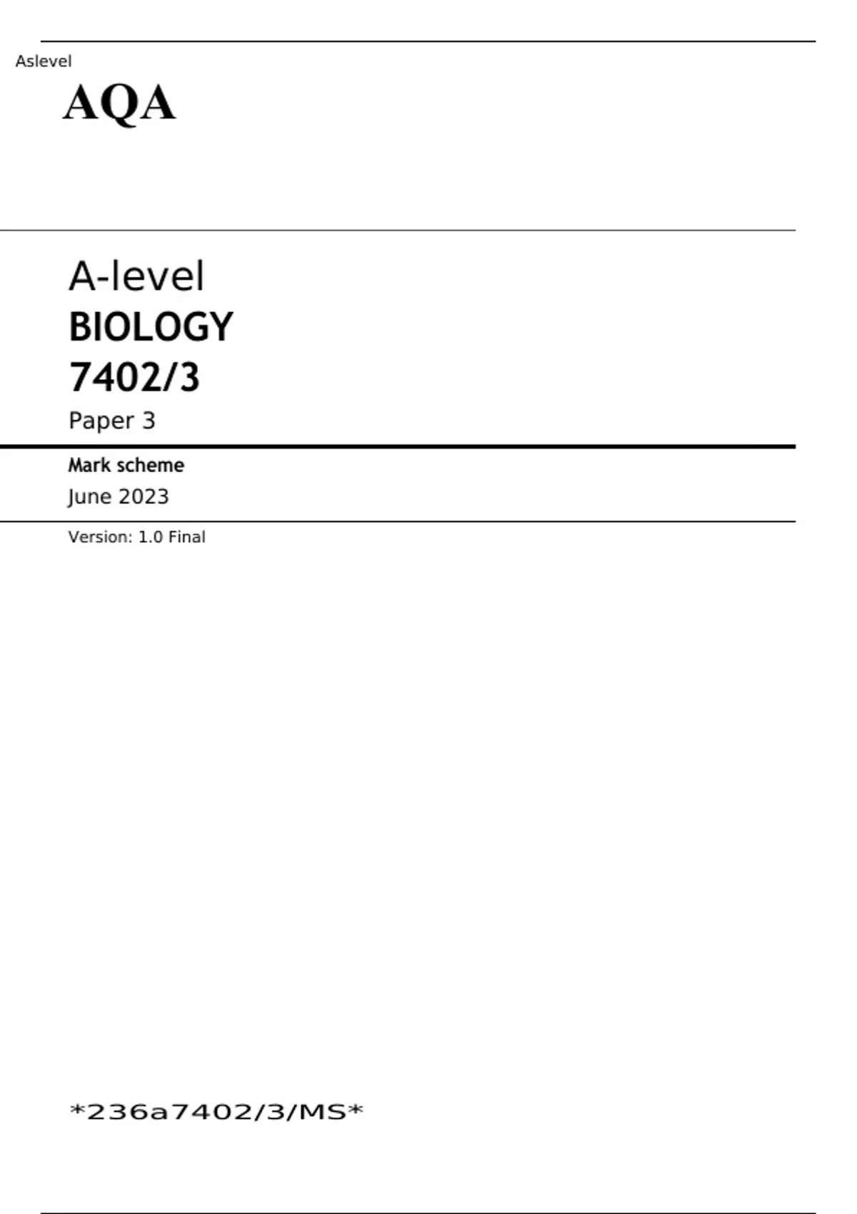 AQA A-level BIOLOGY Paper 3 JUNE 2023 QUESTION PAPER AND MARK SCHEME
