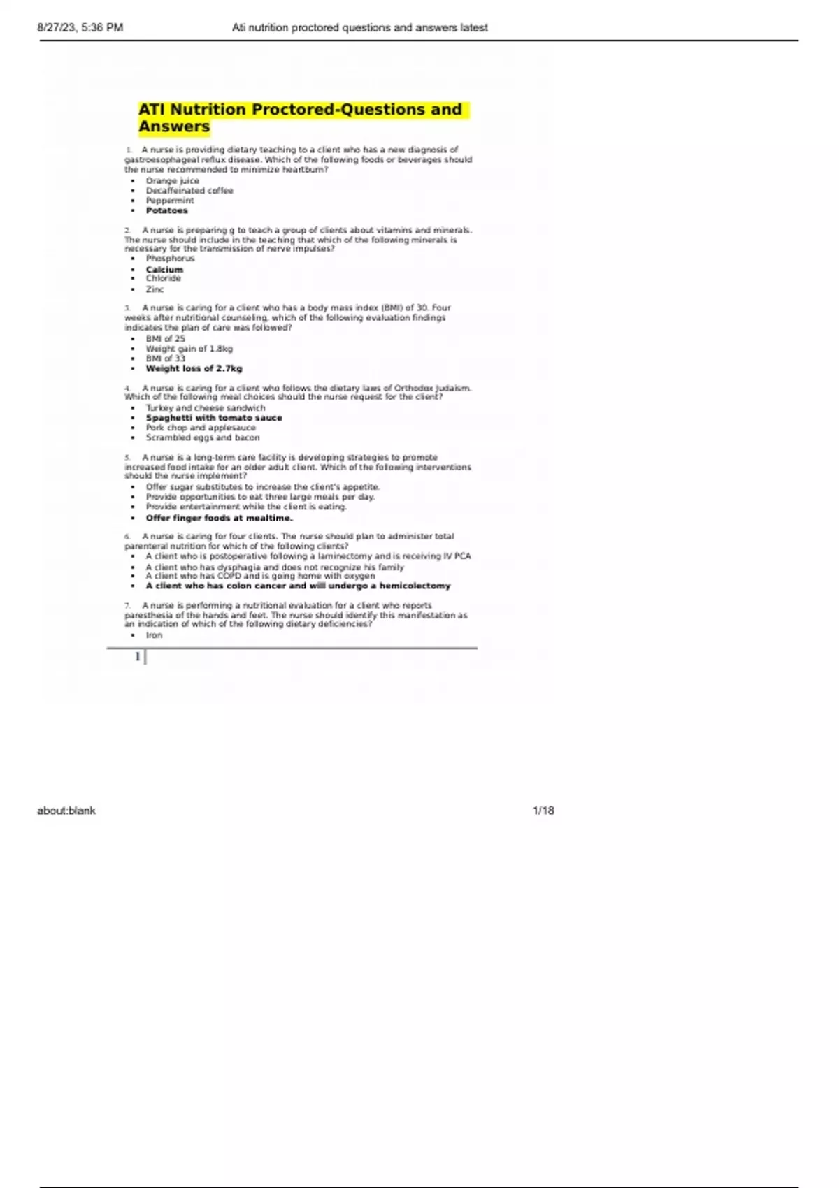 Ati nutrition proctored questions and detailed answers latest 2023