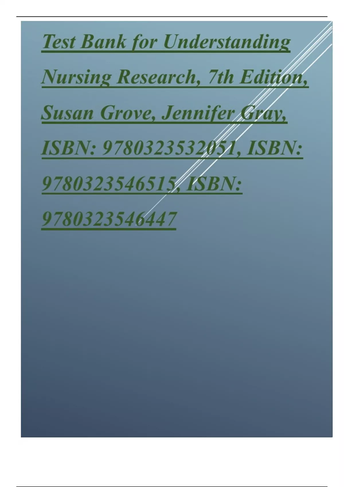 TEST BANK FOR UNDERSTANDING NURSING RESEARCH, 7TH EDITION, SUSAN GROVE, JENNIFE