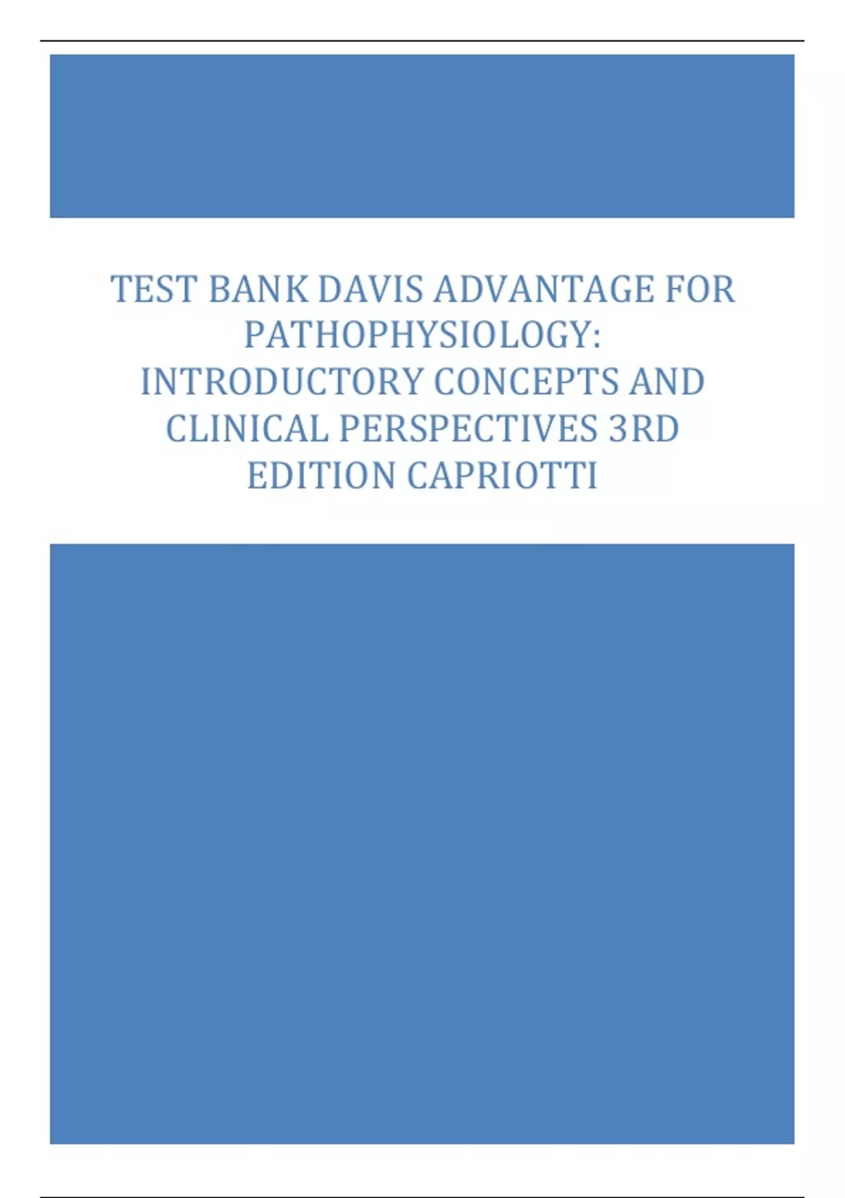 Test Bank Davis Advantage for Pathophysiology, Introductory Concepts and Clinical Perspectives 3rd Edition Capriotti