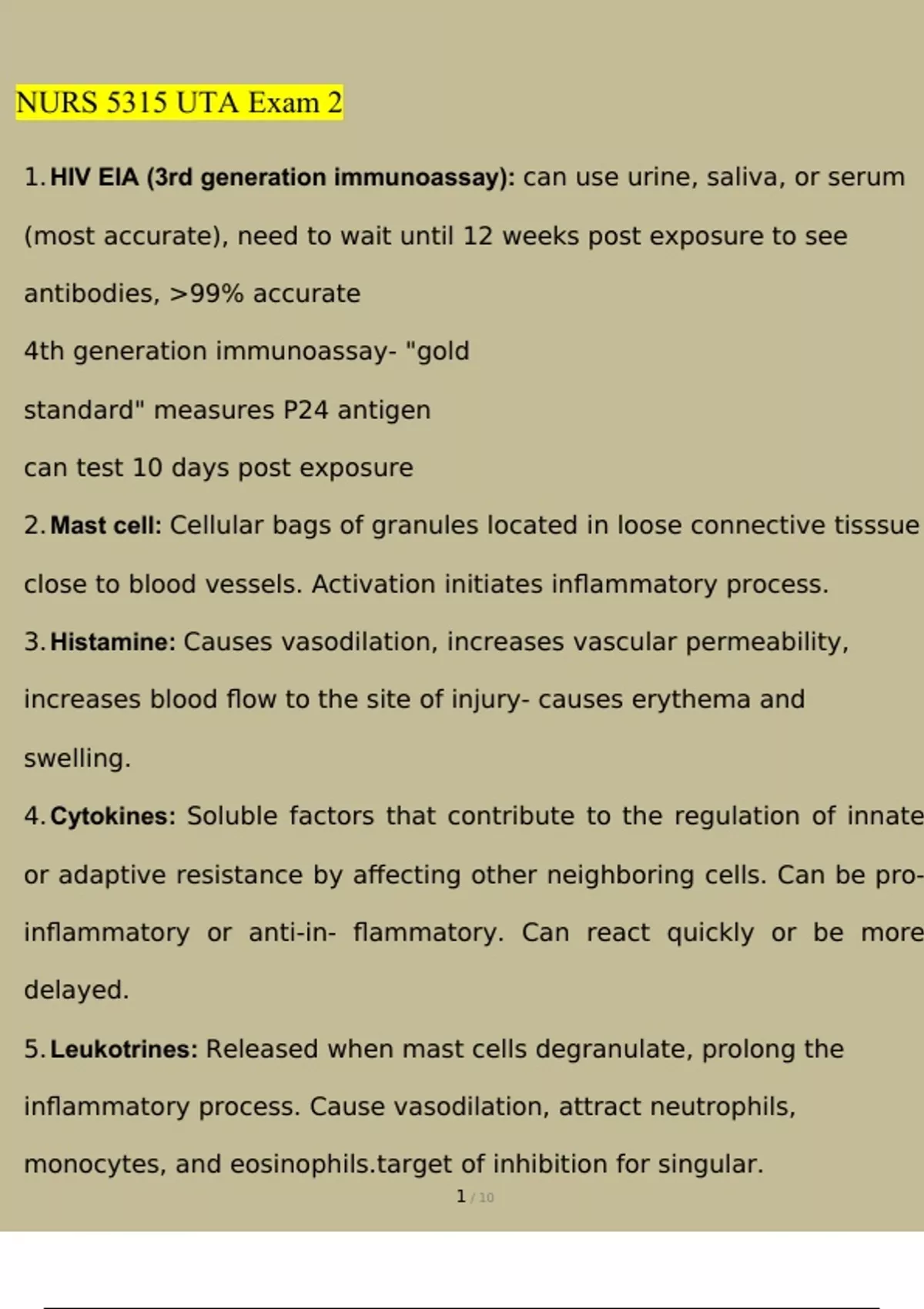 nurs 5315 advanced pathophysiology uta exam 2