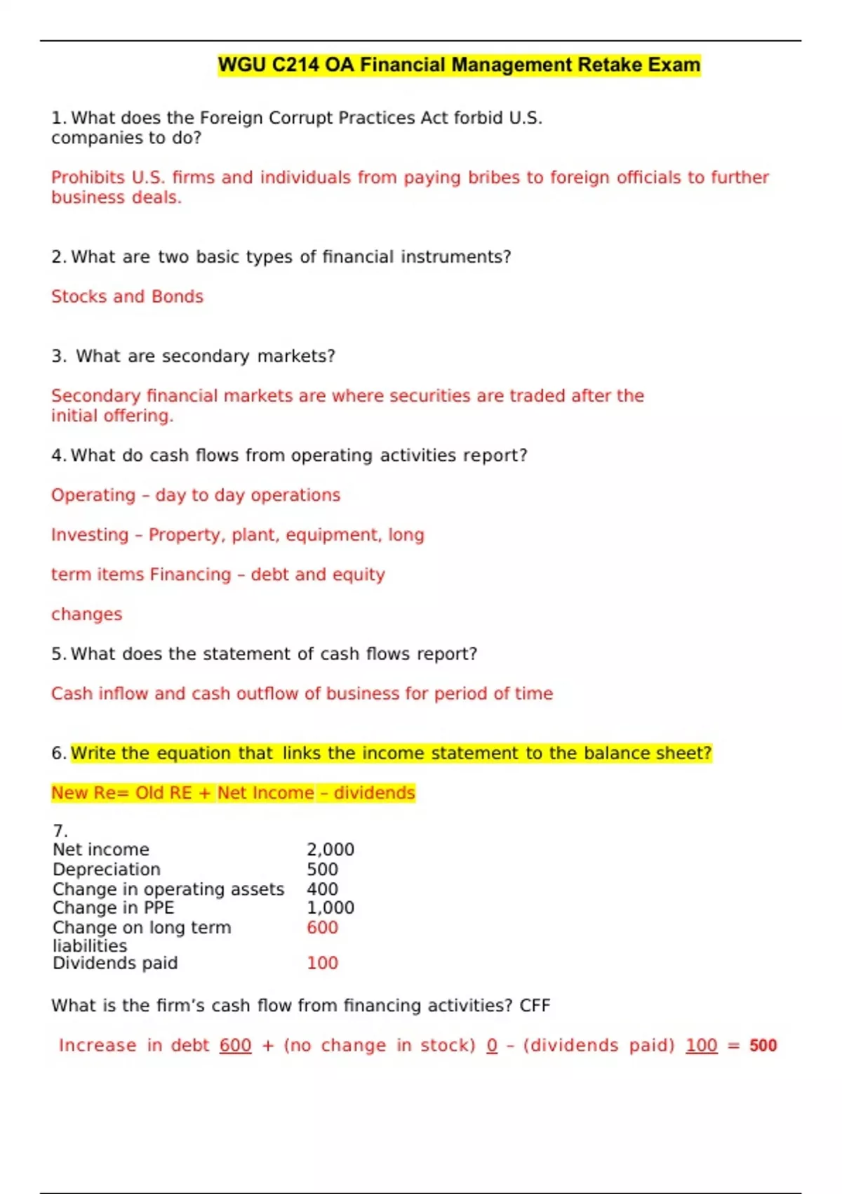 WGU C214 OA Financial Management Retake Exam Questions and Answers with complete solution