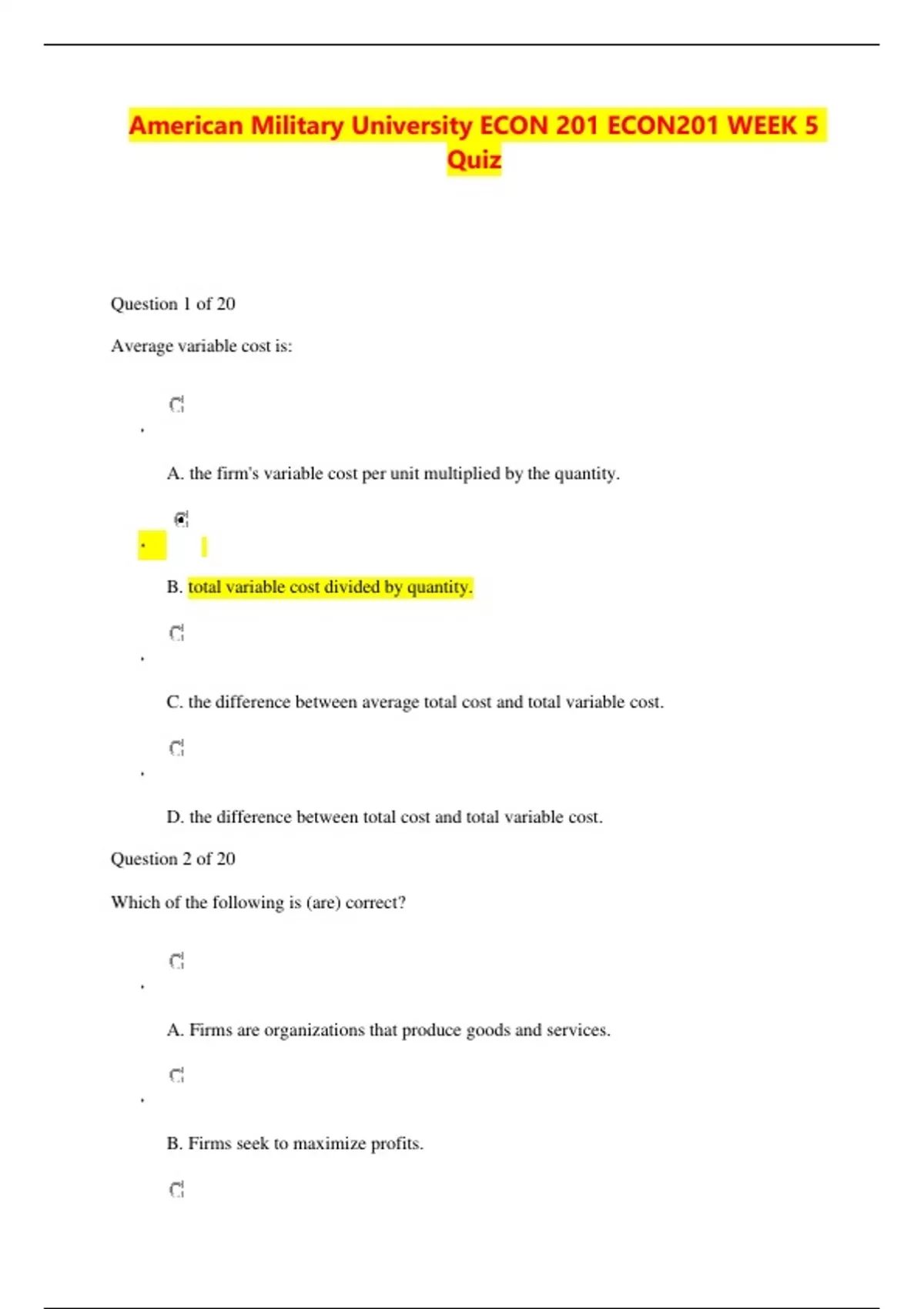 American Military University ECON 201 ECON201 WEEK 7 Quiz 100% CORRECT