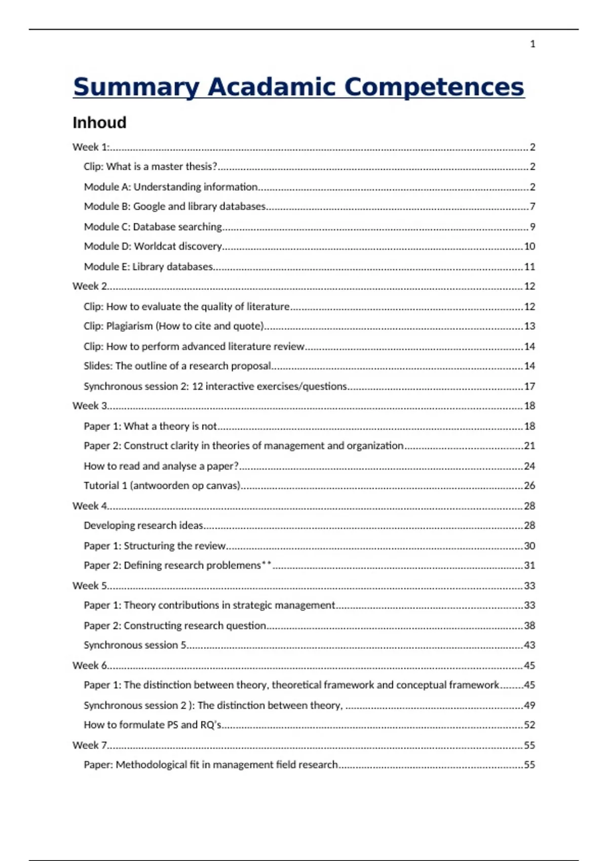 Summary Acad.Comp. Organization and Strategy for pre-master includes modules, clips and papers.