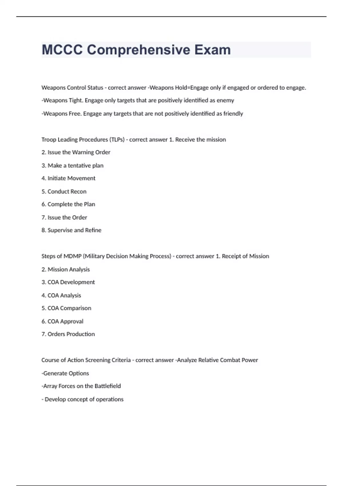 package deal for MCCC EXAM 2023 PASSED