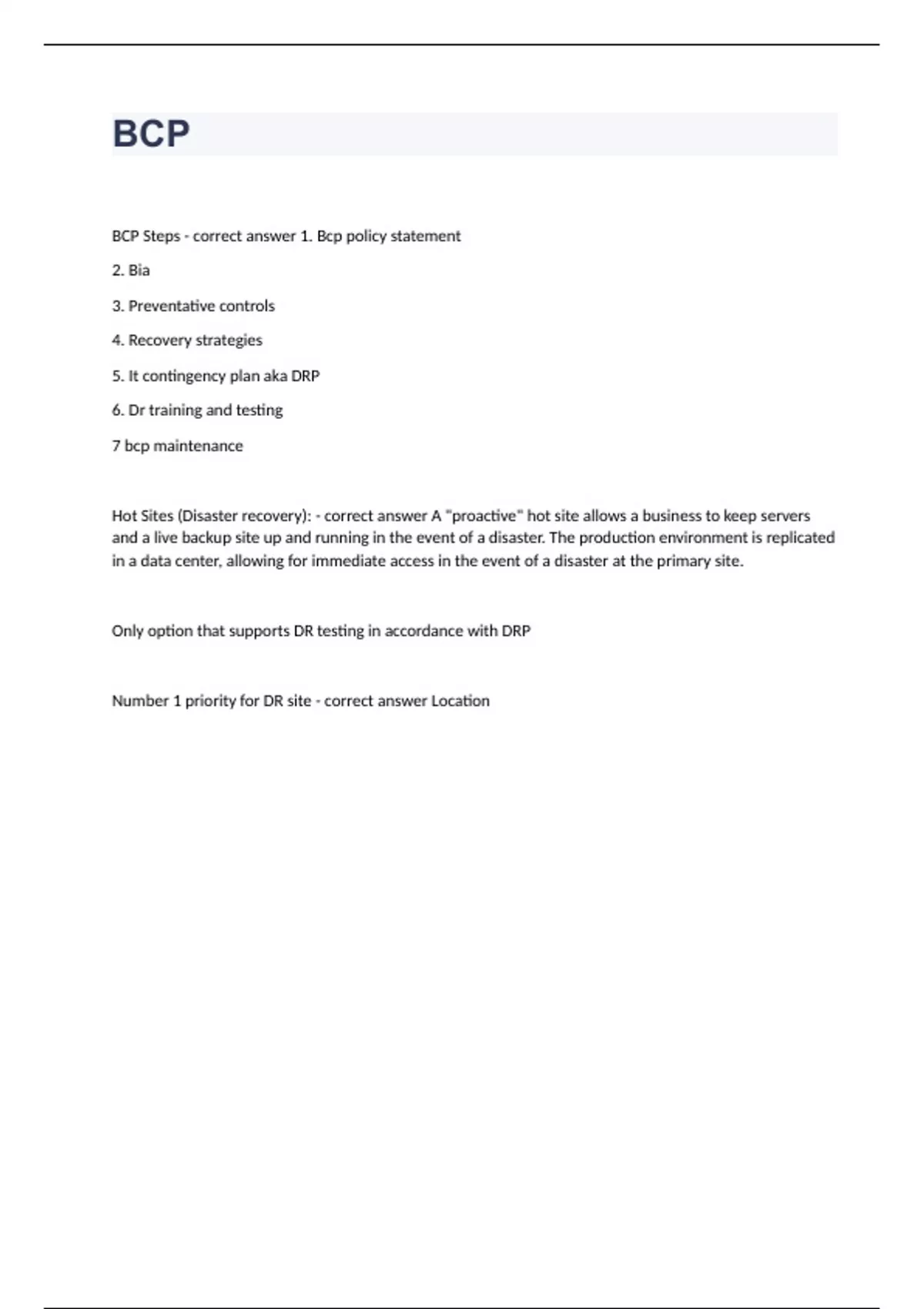 BCP questions with complete solution 2023