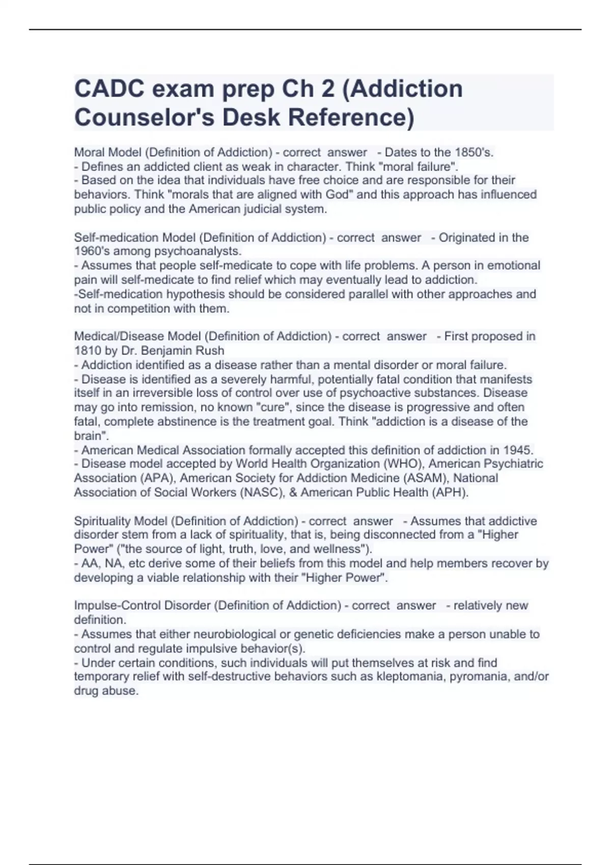 CADC exam prep Ch 2 Question and answers correctly solved 2023