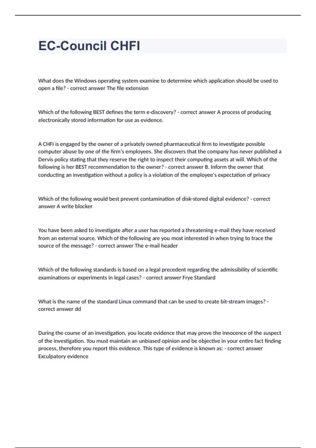 Exam of 8 pages for the course CHFI at CHFI (EC-Council CHFI)