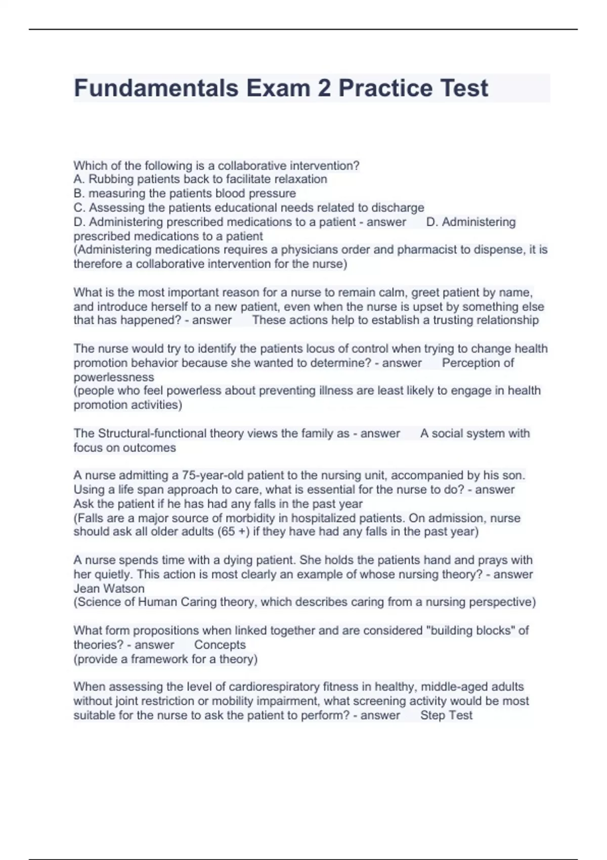 Fundamentals Exam 2 Practice Test Questions with correct Answers