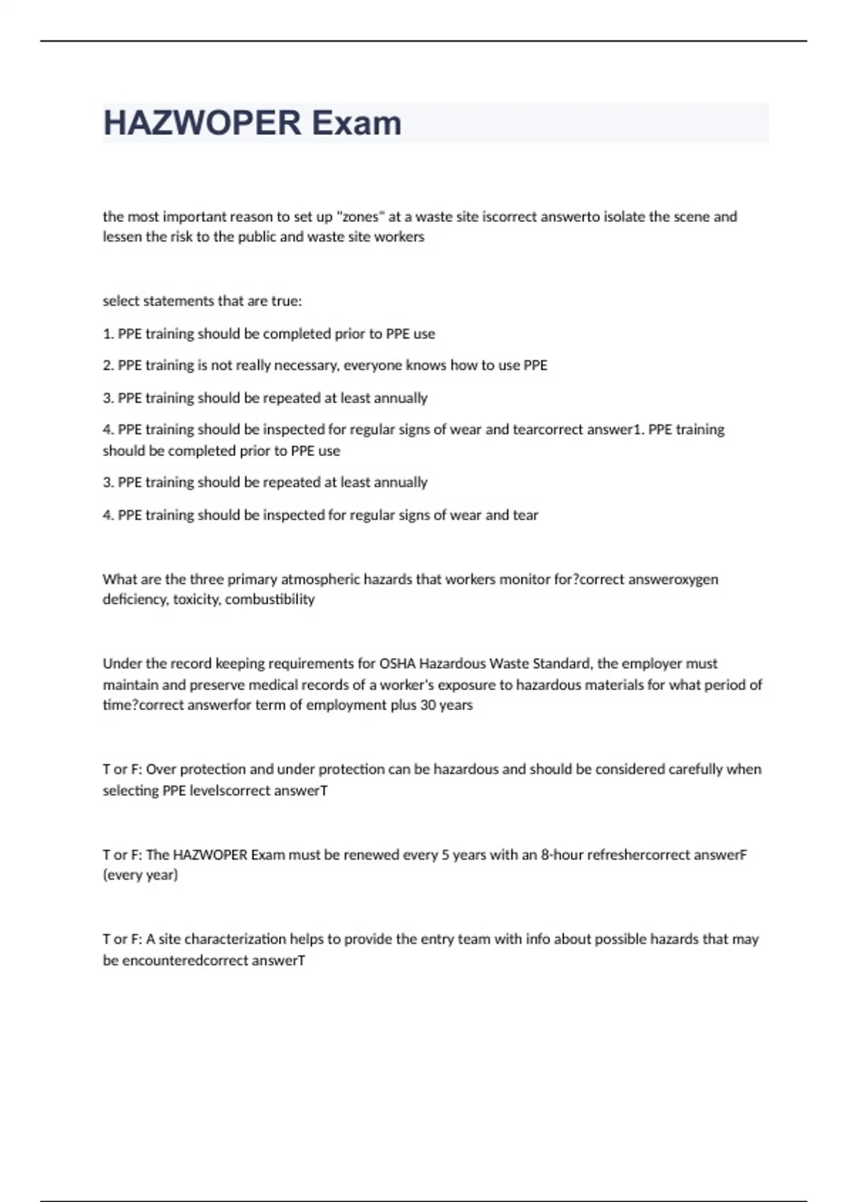 hazwoper exam 2023 with correct answers