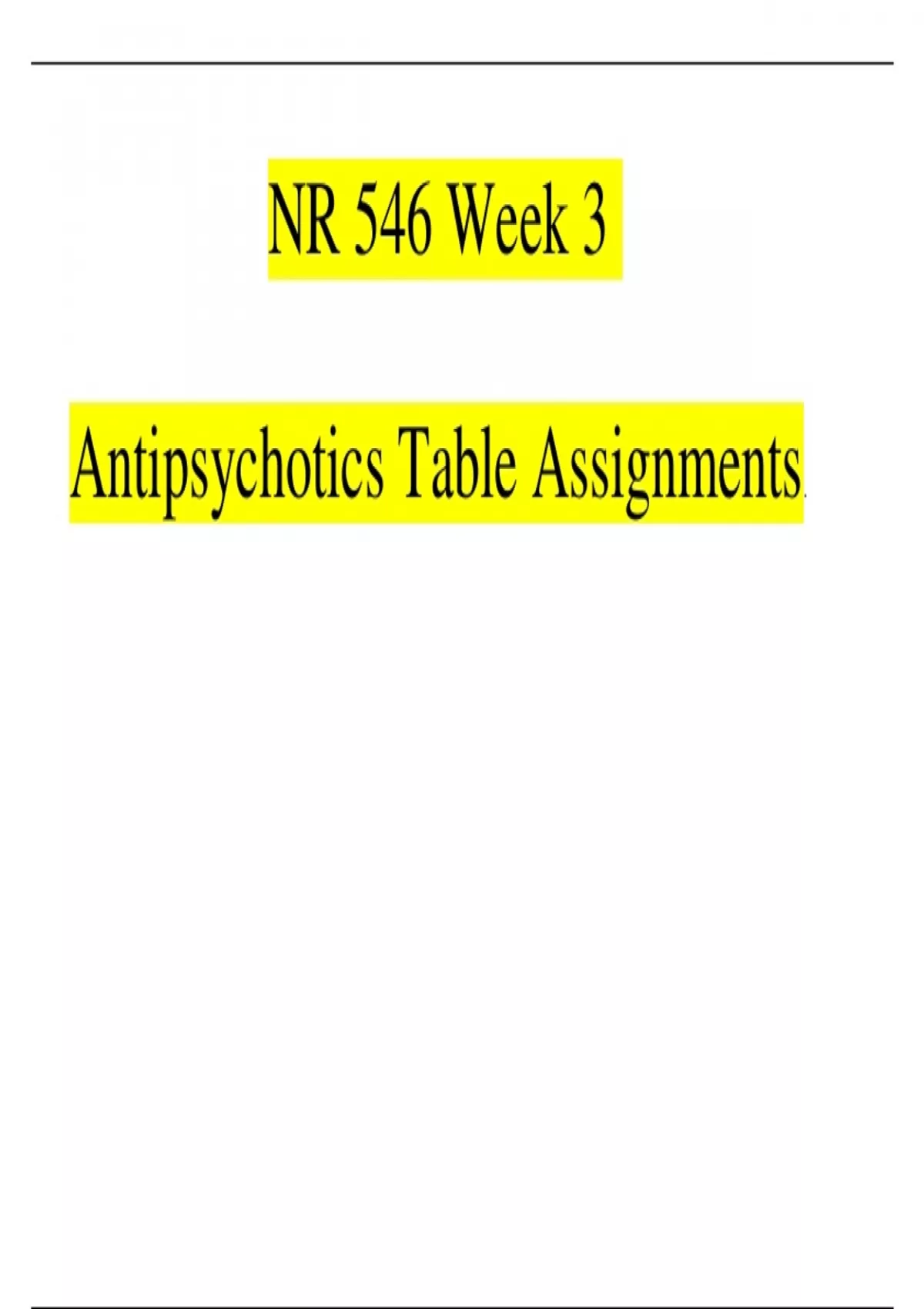 NR 546 Week 3 Assignments Antipsychotics Table 2023/2024 | 100% Correct Verified
