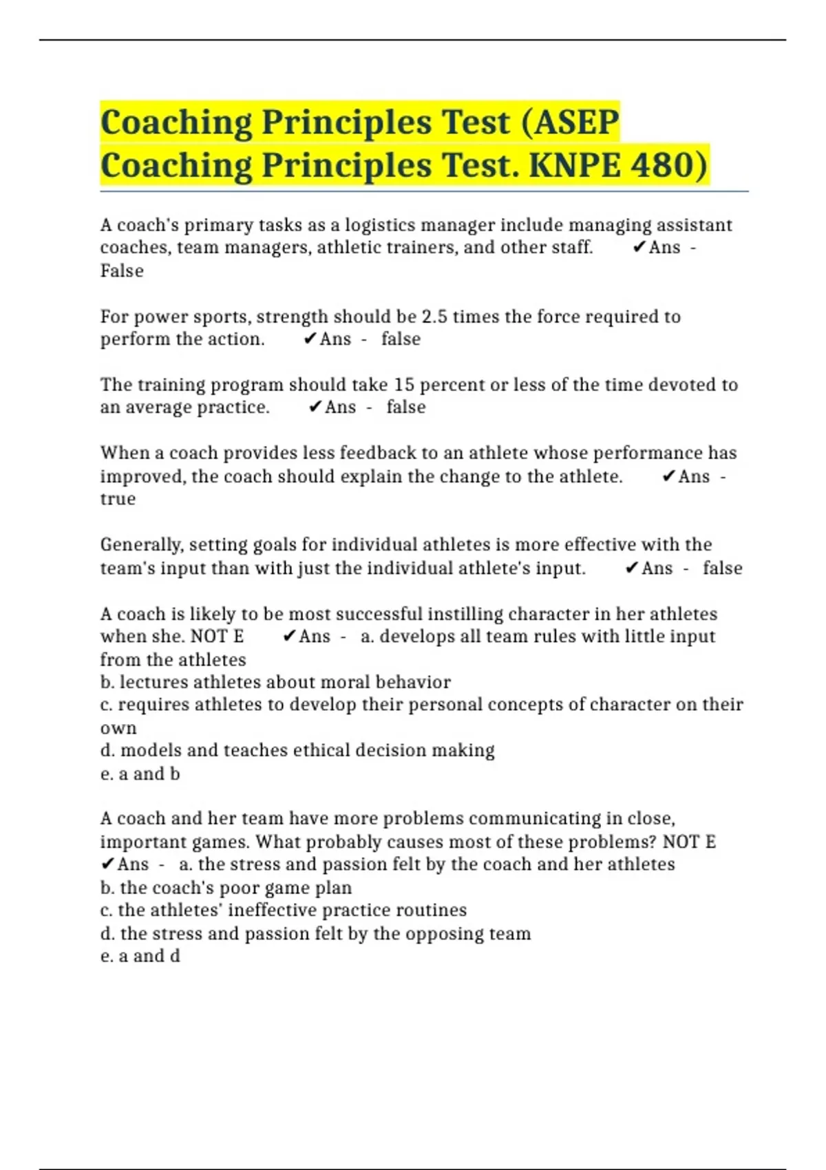 Coaching Principles Test (ASEP Coaching Principles Test. KNPE 480)