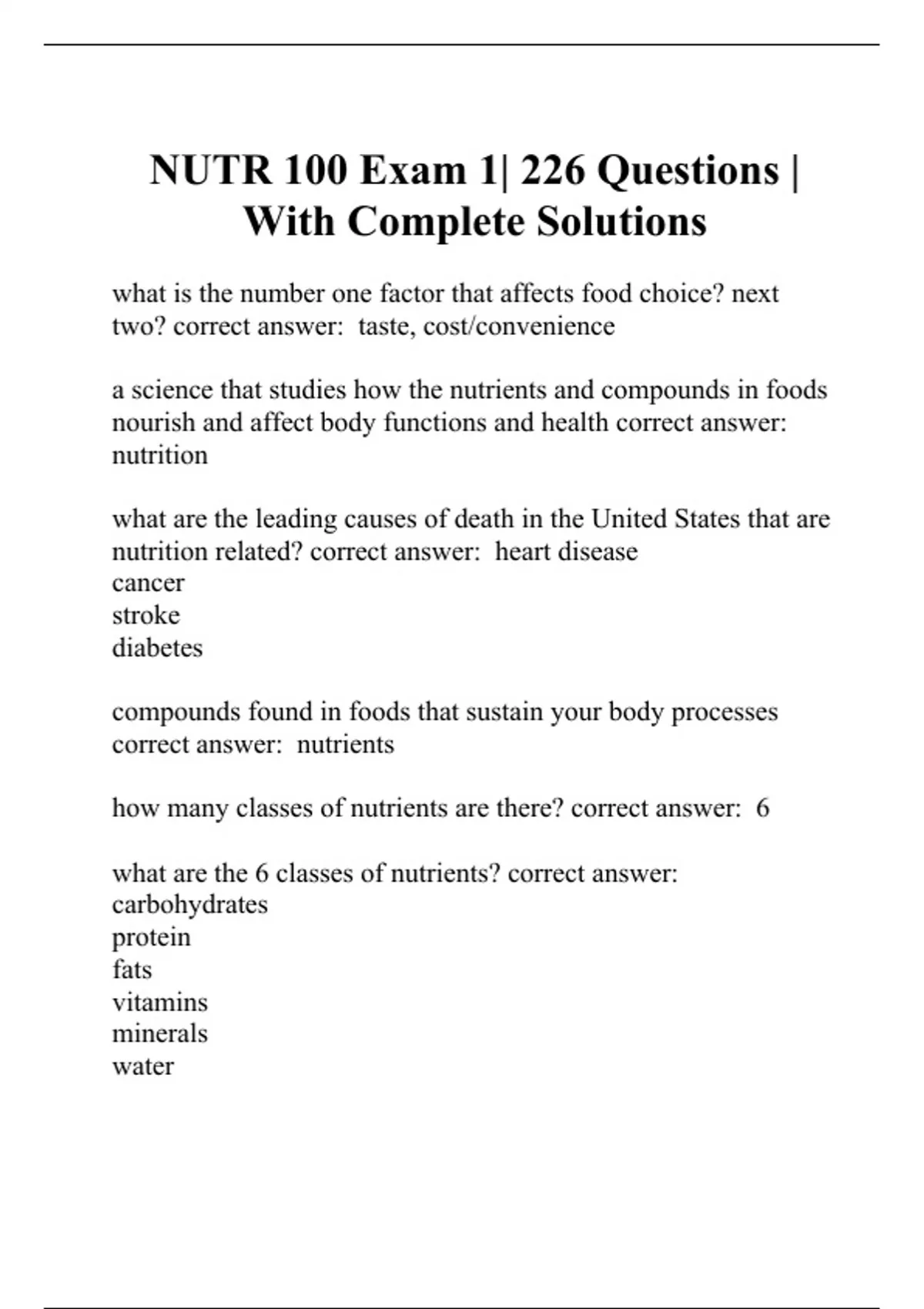 NUTR 100 Exam 1| 226 Questions | With Complete Solutions
