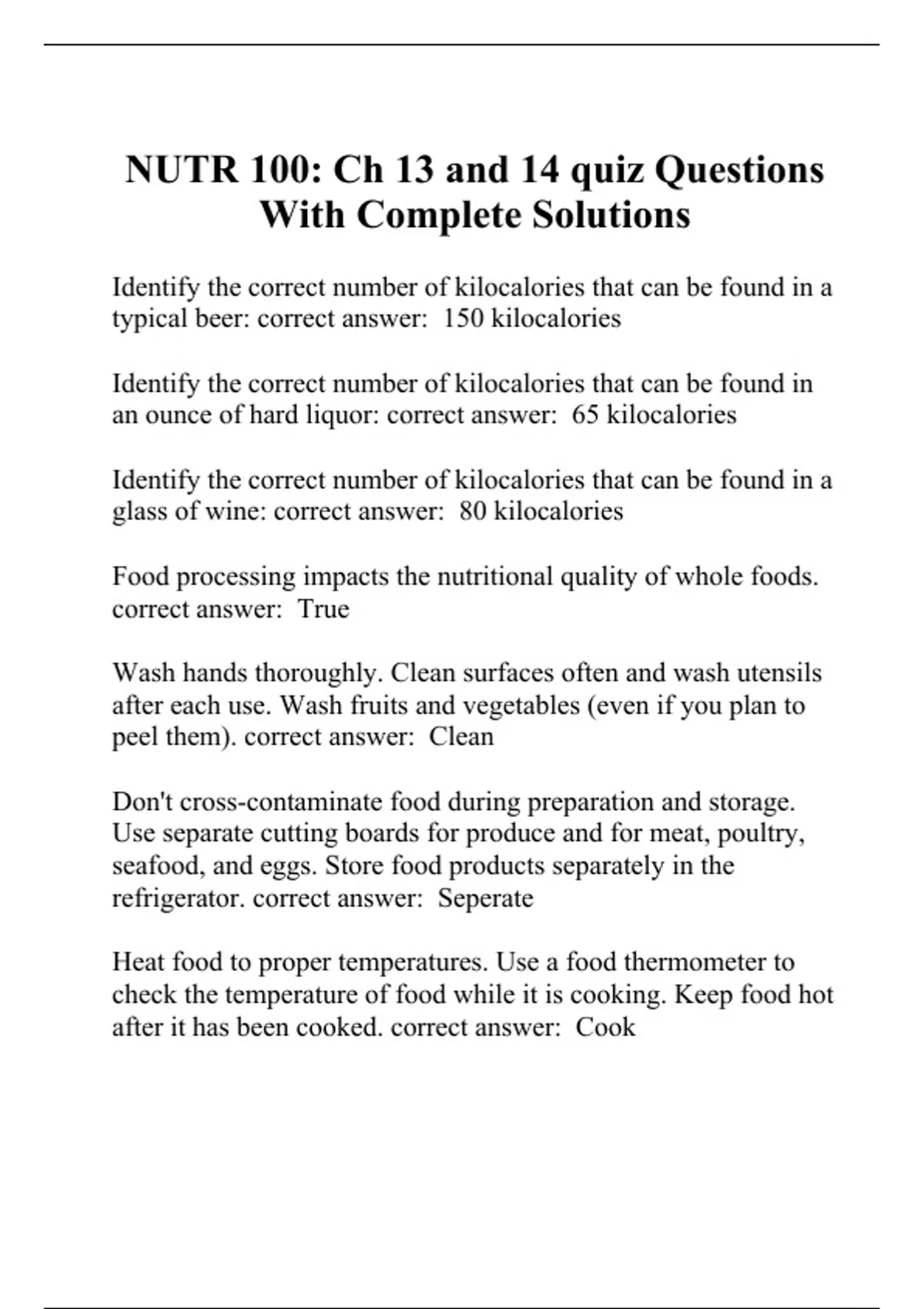 NUTR 100: Ch 13 and 14 quiz Questions With Complete Solutions