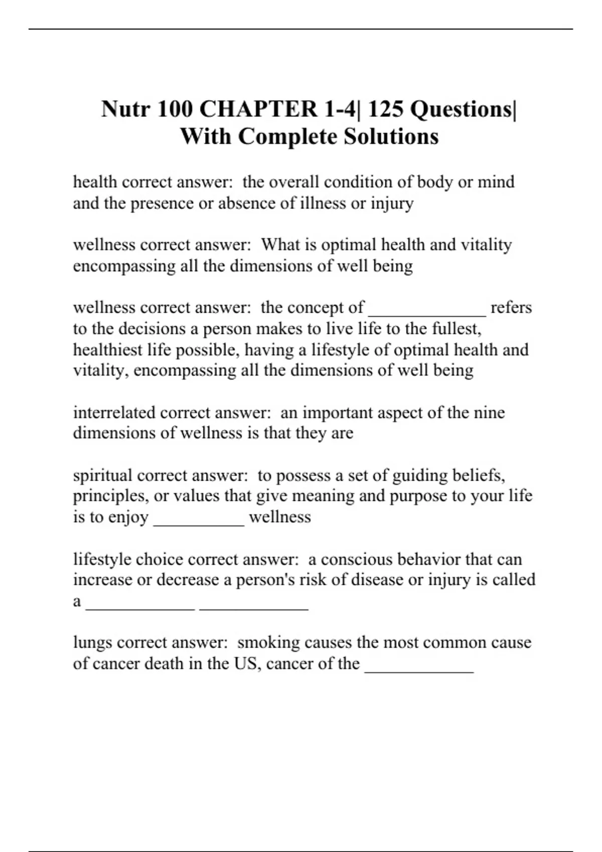 Nutr 100 CHAPTER 1-4| 125 Questions| With Complete Solutions