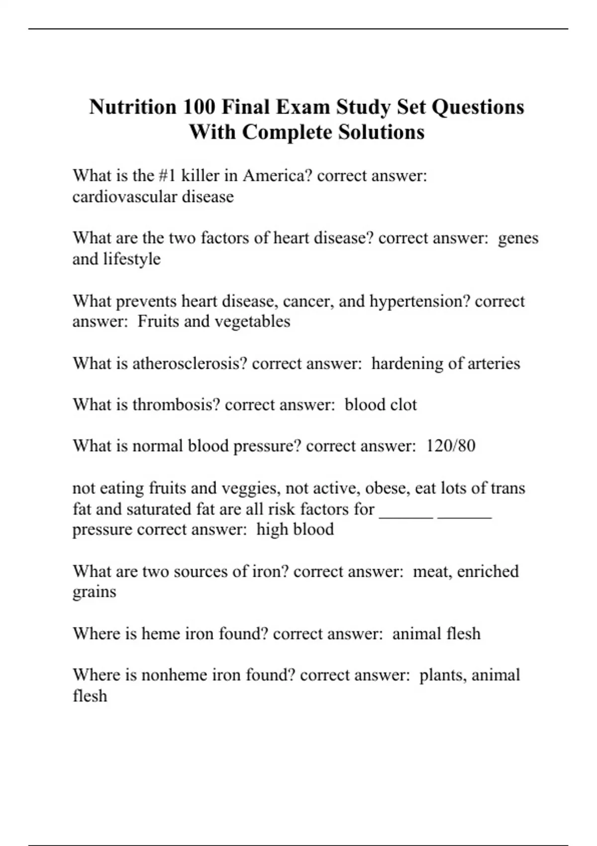 Nutrition 100 Final Exam Study Set Questions With Complete Solutions.