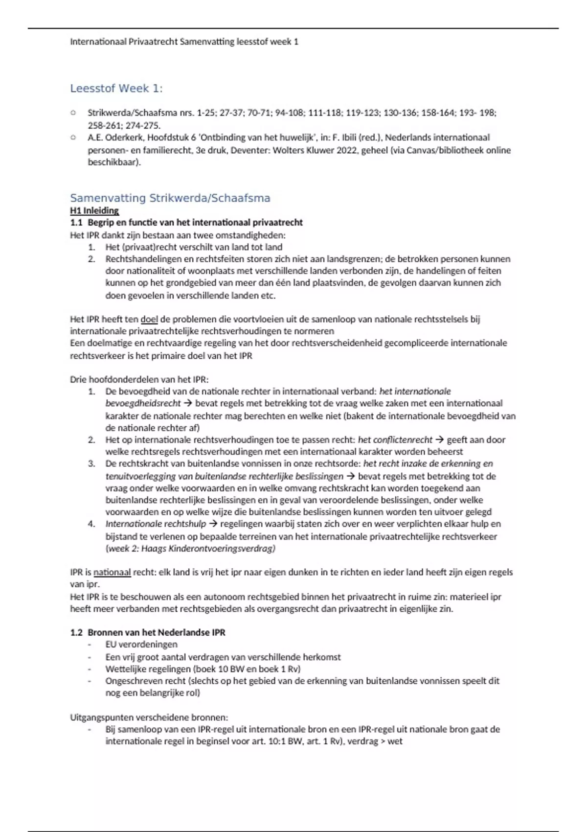 , Internationaal Privaatrecht Samenvatting leesstof week 1