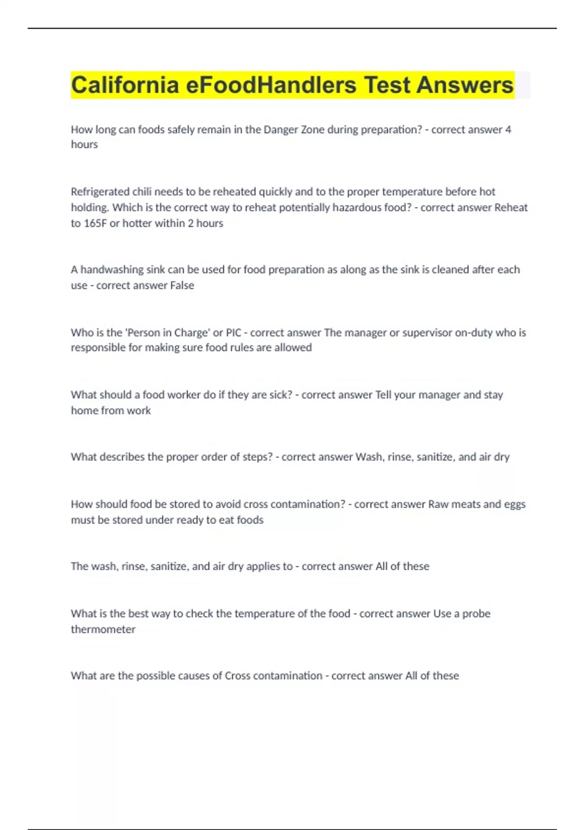 How should food be stored to avoid cross contamination? - correct answer Raw meats and eggs must be stored under ready to eat foods
