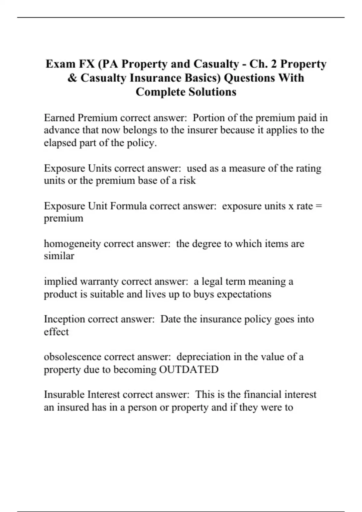 Exam FX (PA Property and Casualty - Ch. 2 Property & Casualty Insurance Basics) Questions With Complete Solutions