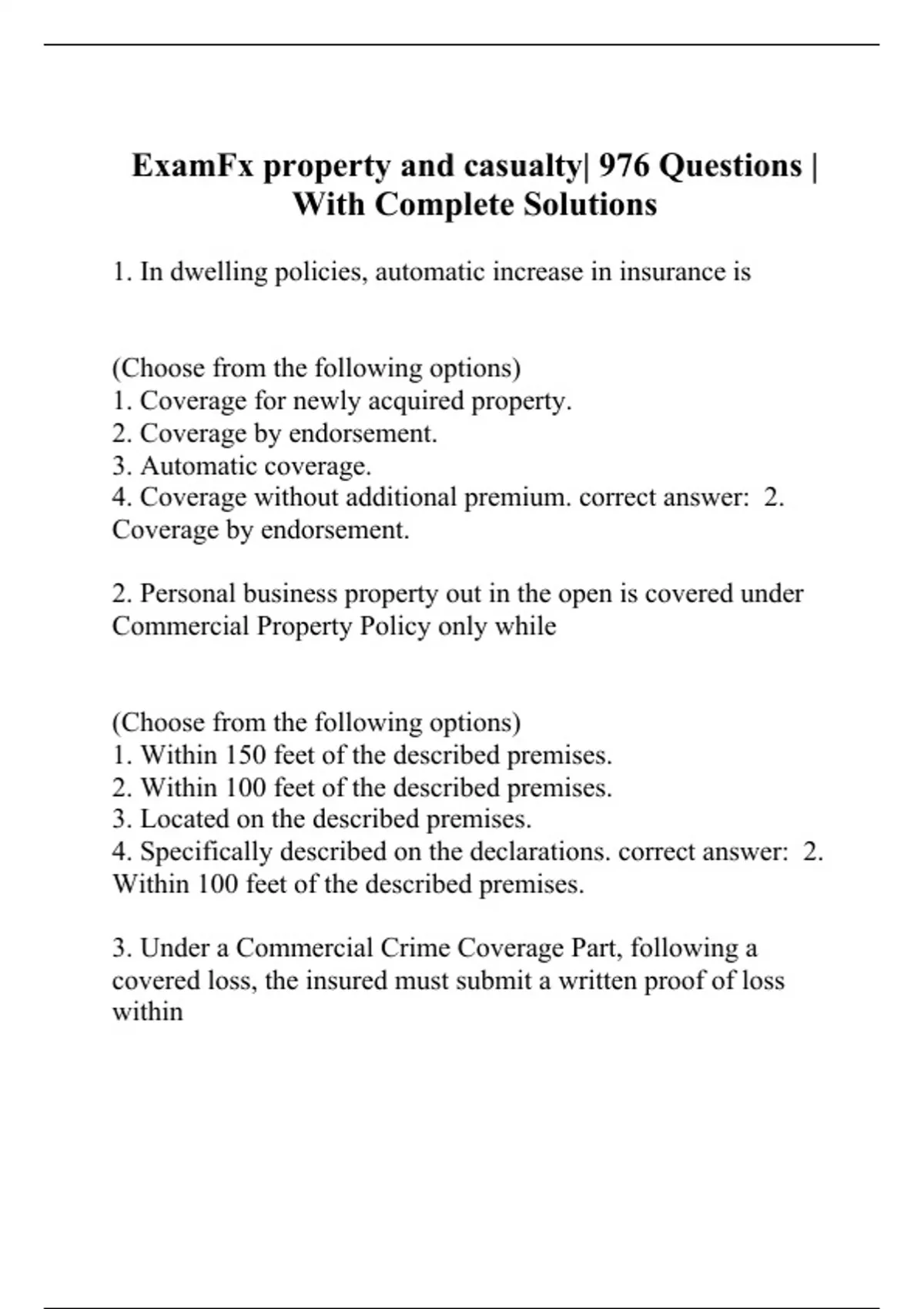 ExamFx property and casualty| 976 Questions | With Complete Solutions