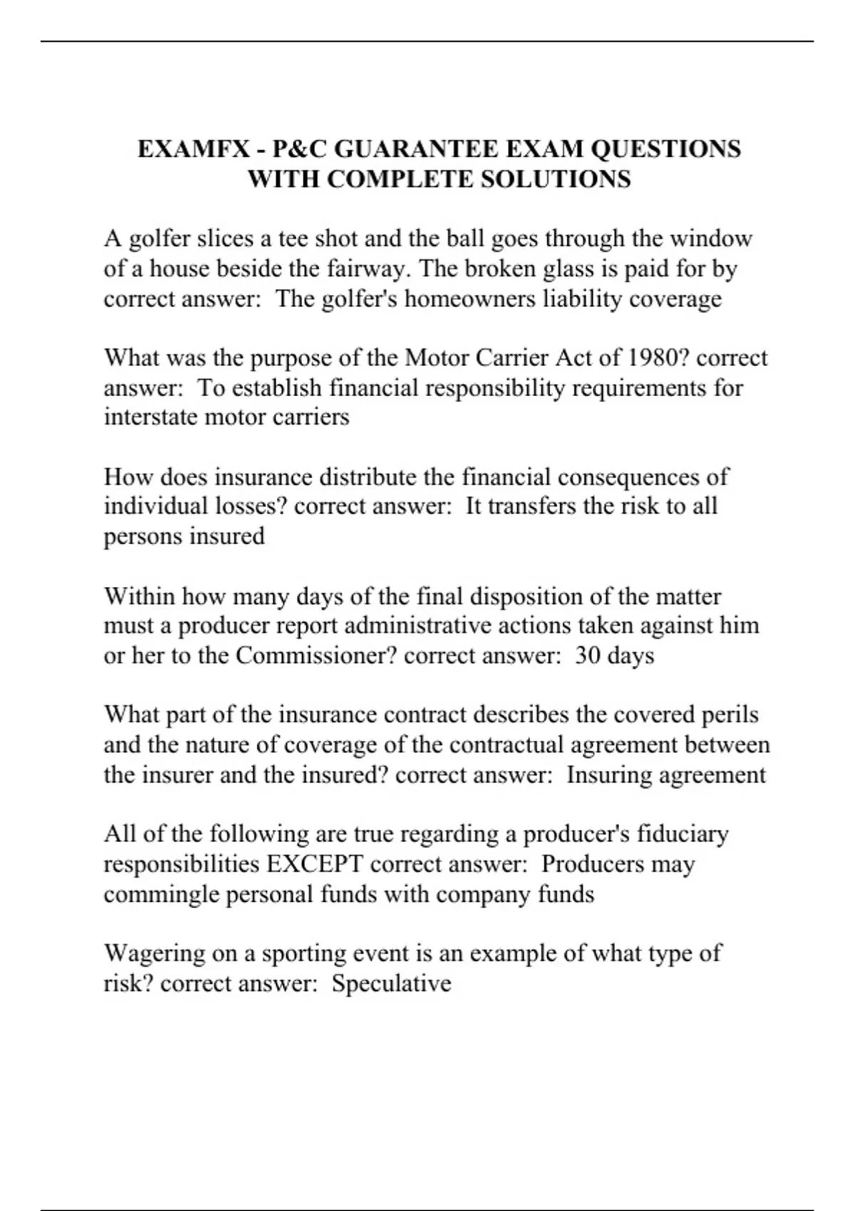EXAMFX - P&C GUARANTEE EXAM QUESTIONS WITH COMPLETE SOLUTIONS