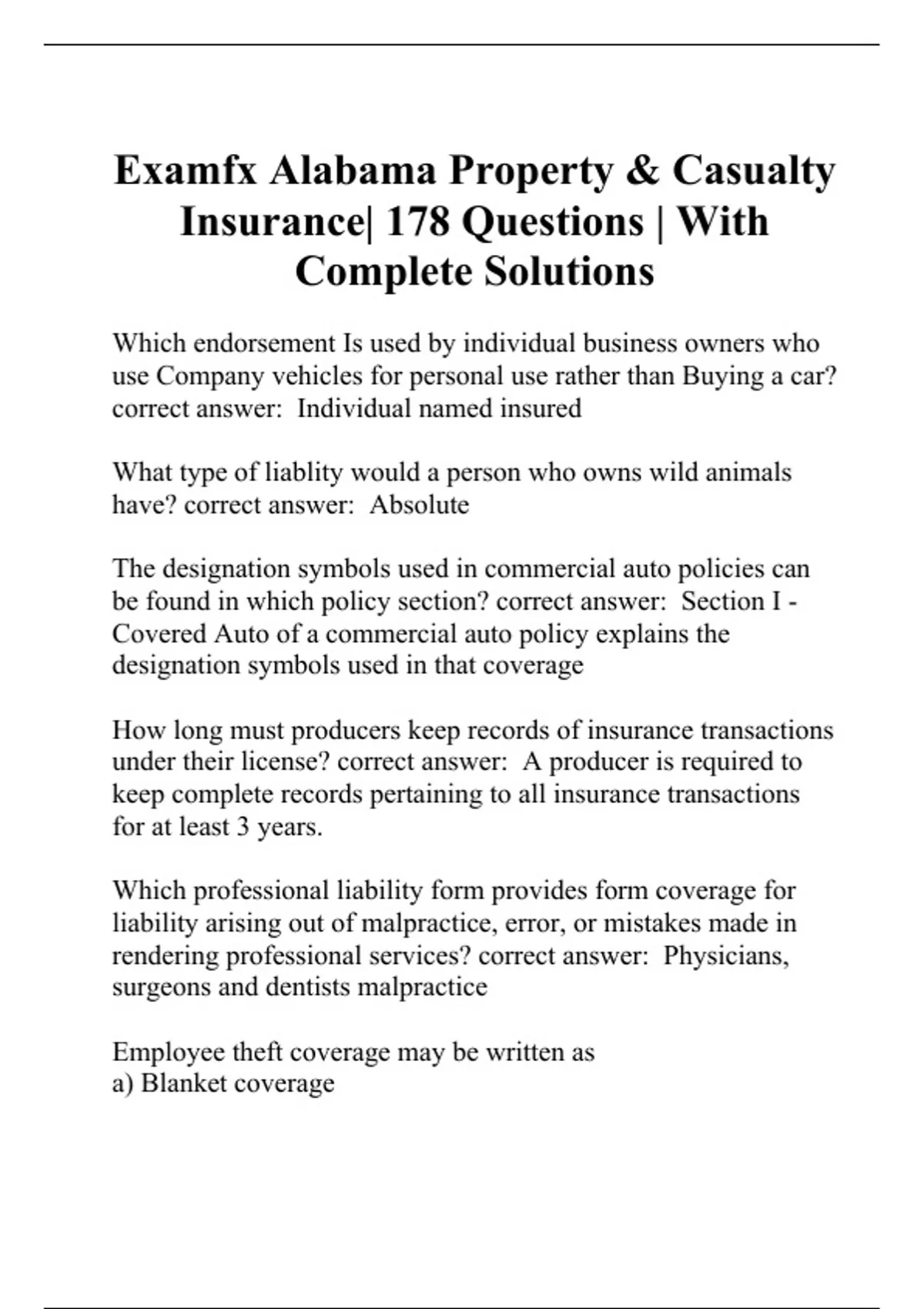 Examfx Alabama Property & Casualty Insurance| 178 Questions | With Complete Solutions