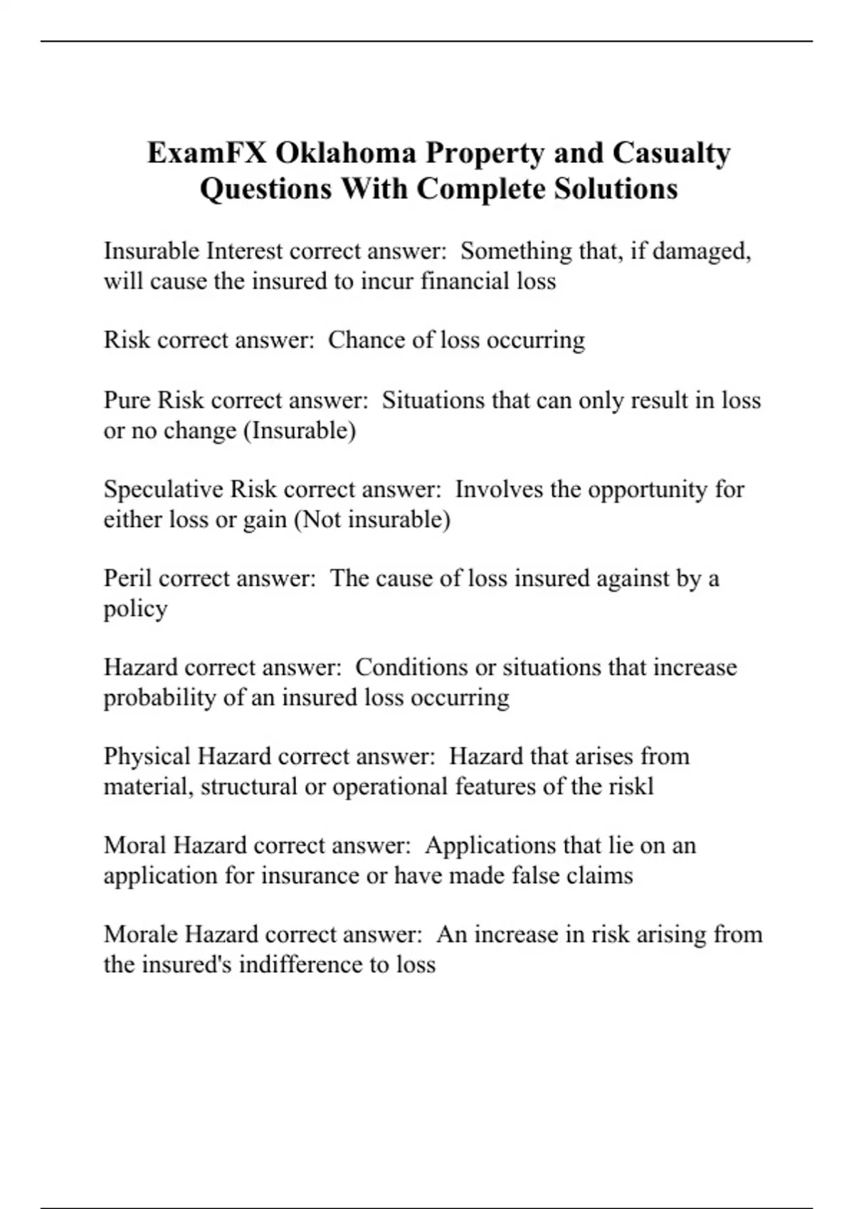 ExamFX Oklahoma Property and Casualty Questions With Complete Solutions