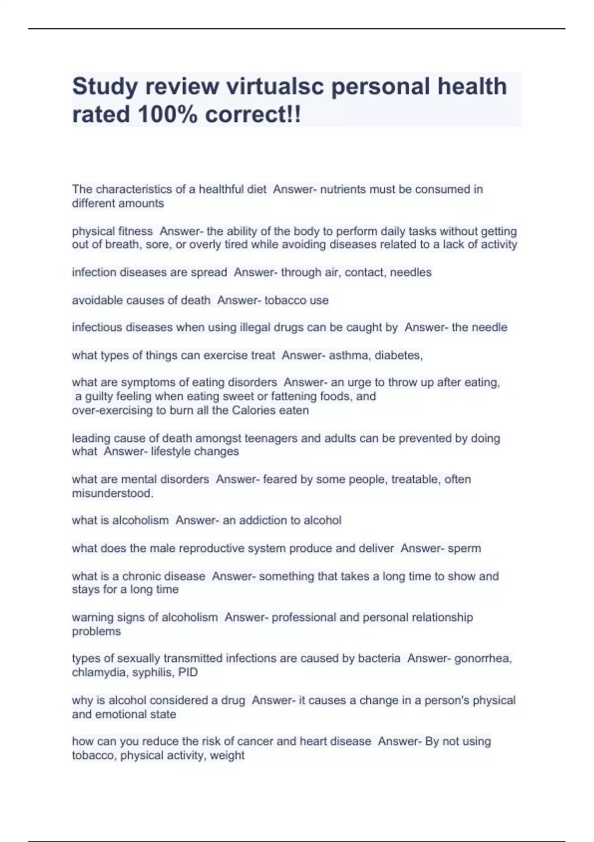 Study review virtualsc personal health rated 100% correct!!