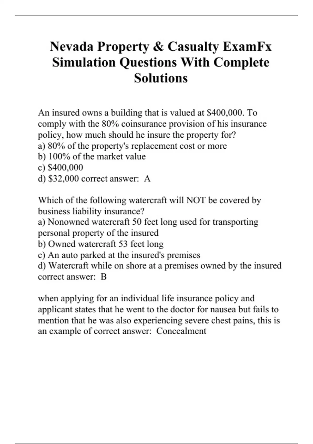 Nevada Property & Casualty ExamFx Simulation Questions With Complete Solutions