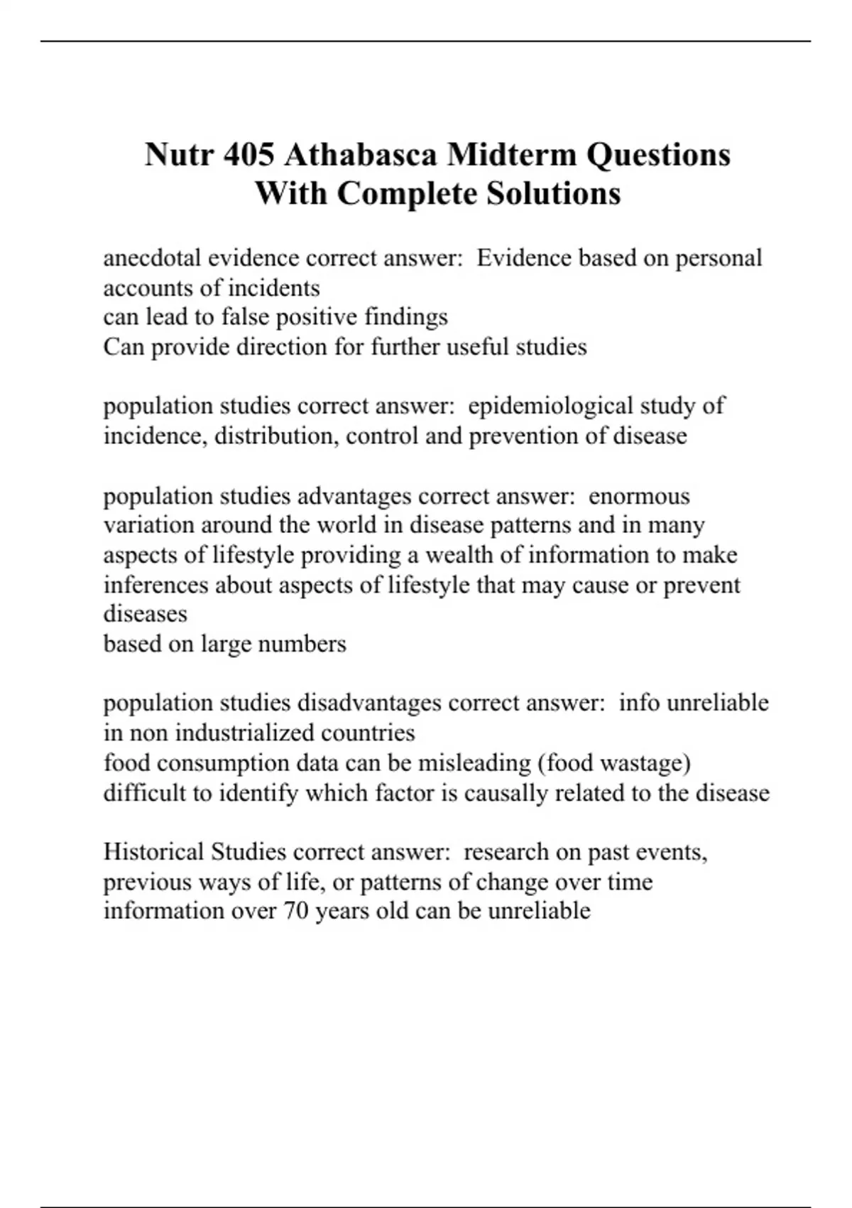 Nutr 405 Athabasca Midterm Questions With Complete Solutions