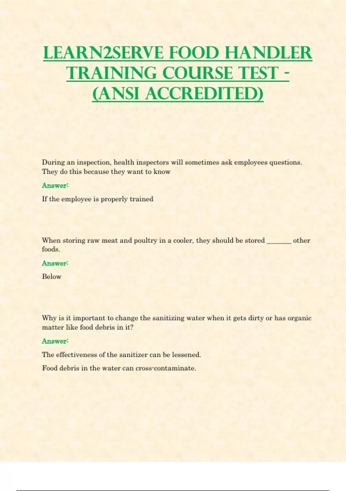 Learn2Serve Food Handler Training Course Latest Test - (ANSI Accredited) All Correct 100%