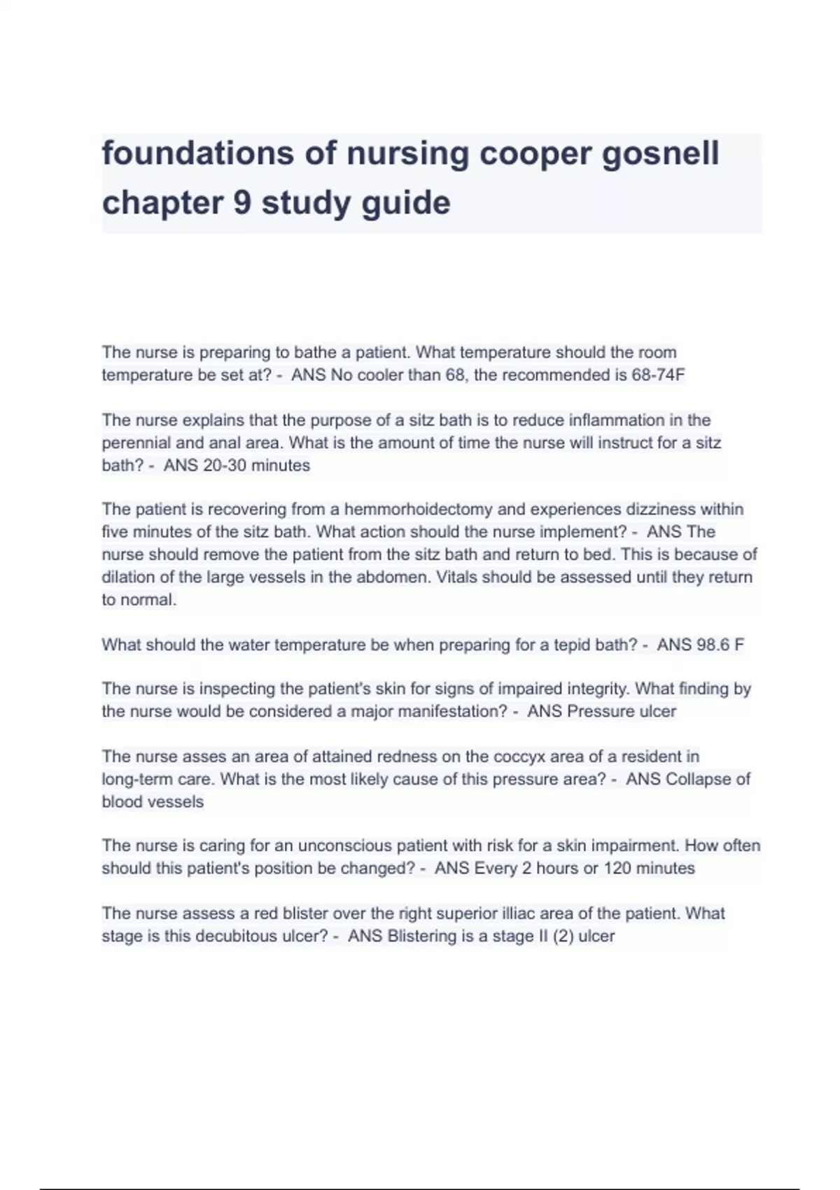Foundations of nursing cooper gosnell chapter 9 study guide (A+ GRADED)