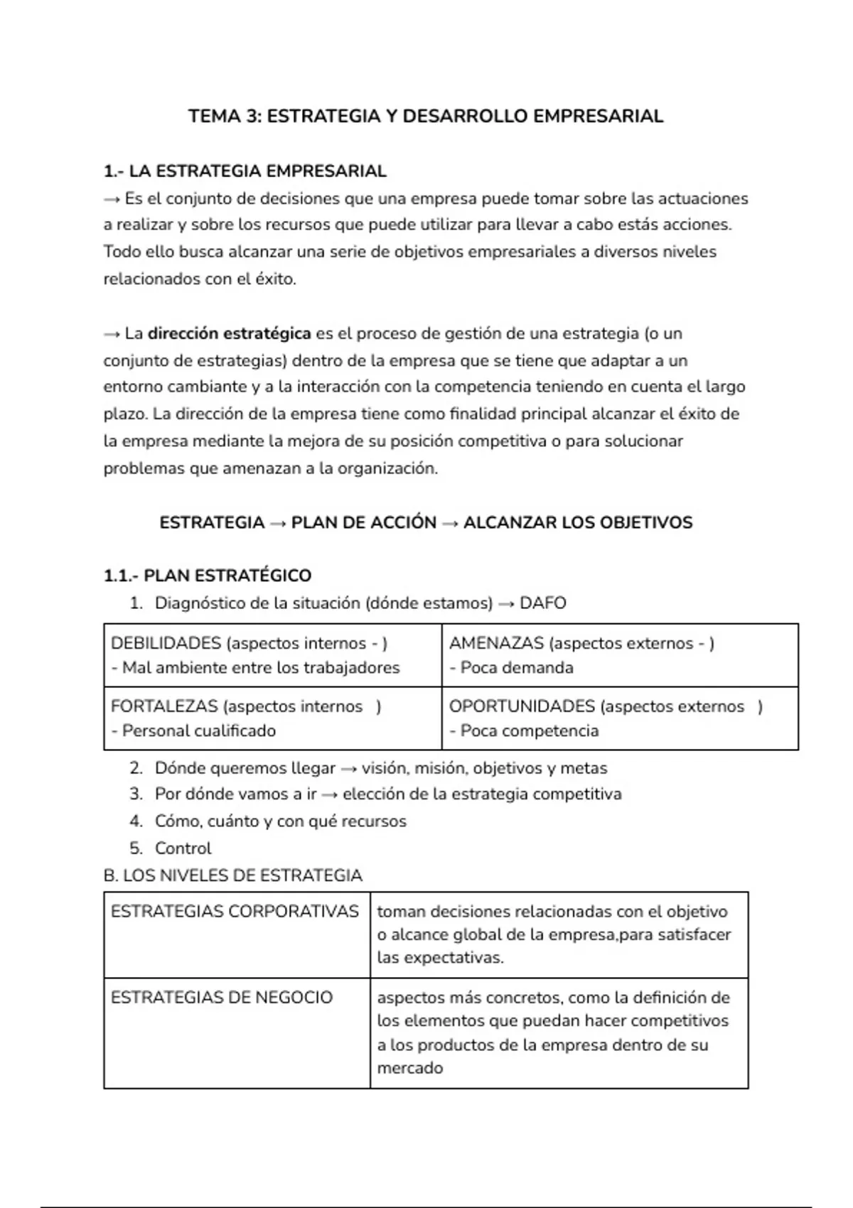 TEMA 3: ESTRATEGIA Y DESARROLLO EMPRESARIAL