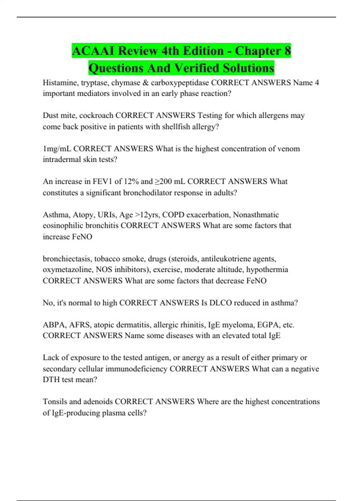 ACAAI Review 4th Edition - Chapter 8 Questions And Verified Solutions