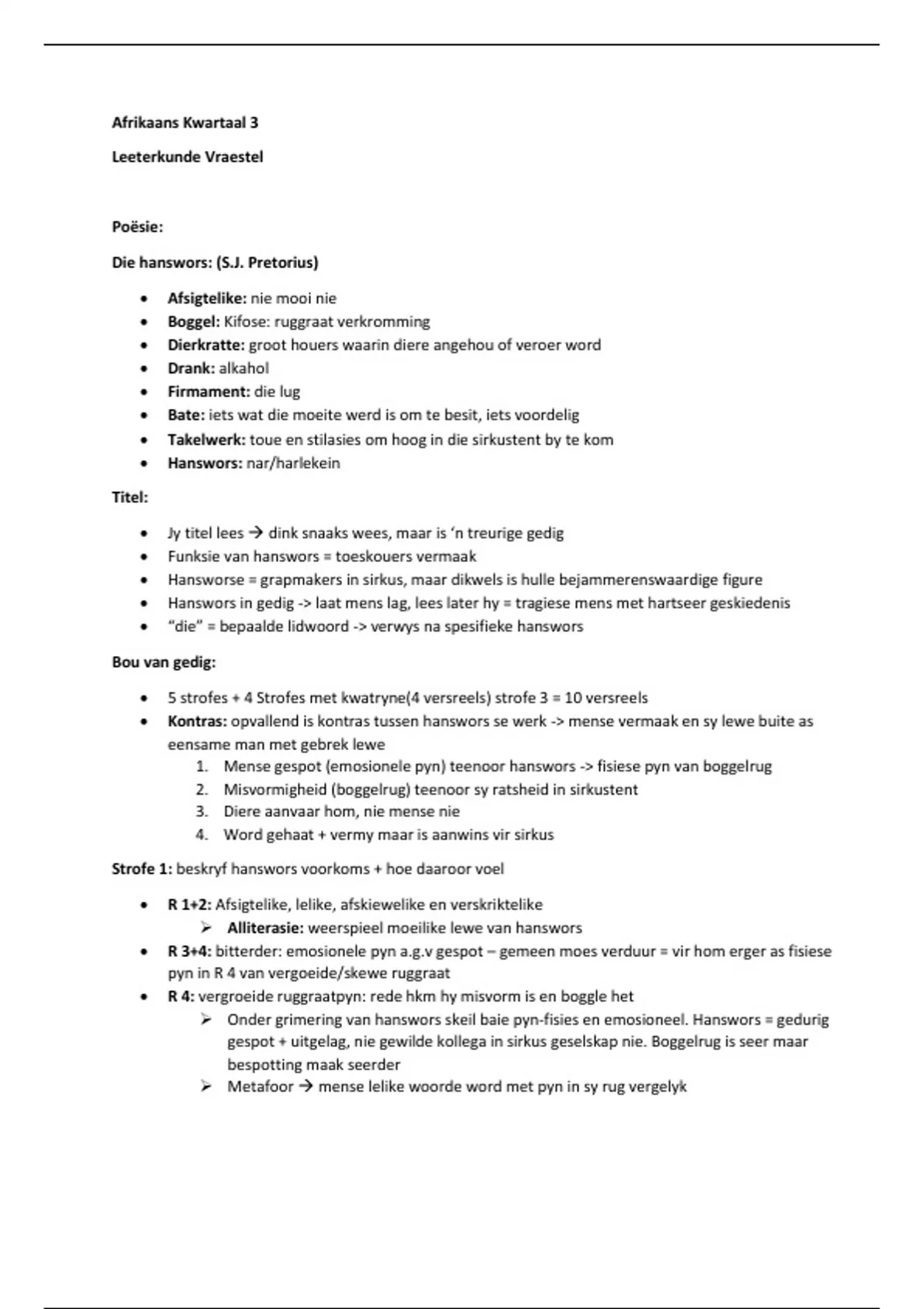 • Hanswors in gedig -> laat mens lag, lees later hy = tragiese mens met hartseer geskiedenis