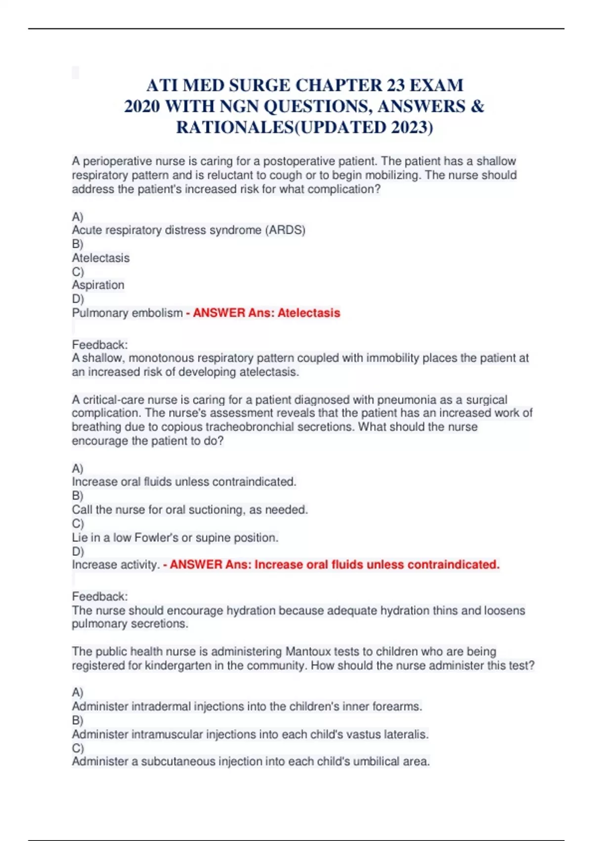 ATI MED SURGE CHAPTER 23 EXAM 2020 WITH NGN QUESTIONS, ANSWERS & RATIONALES(UPDATED 2023)
