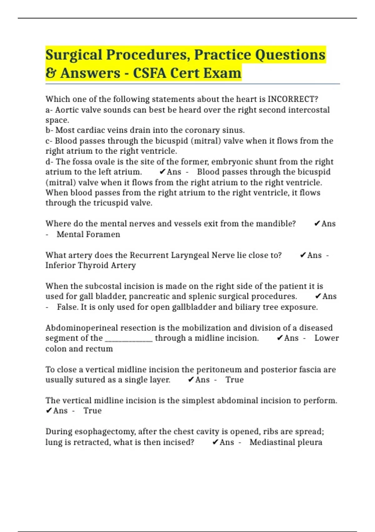 Surgical Procedures, Practice Questions & Answers - CSFA Cert Exam