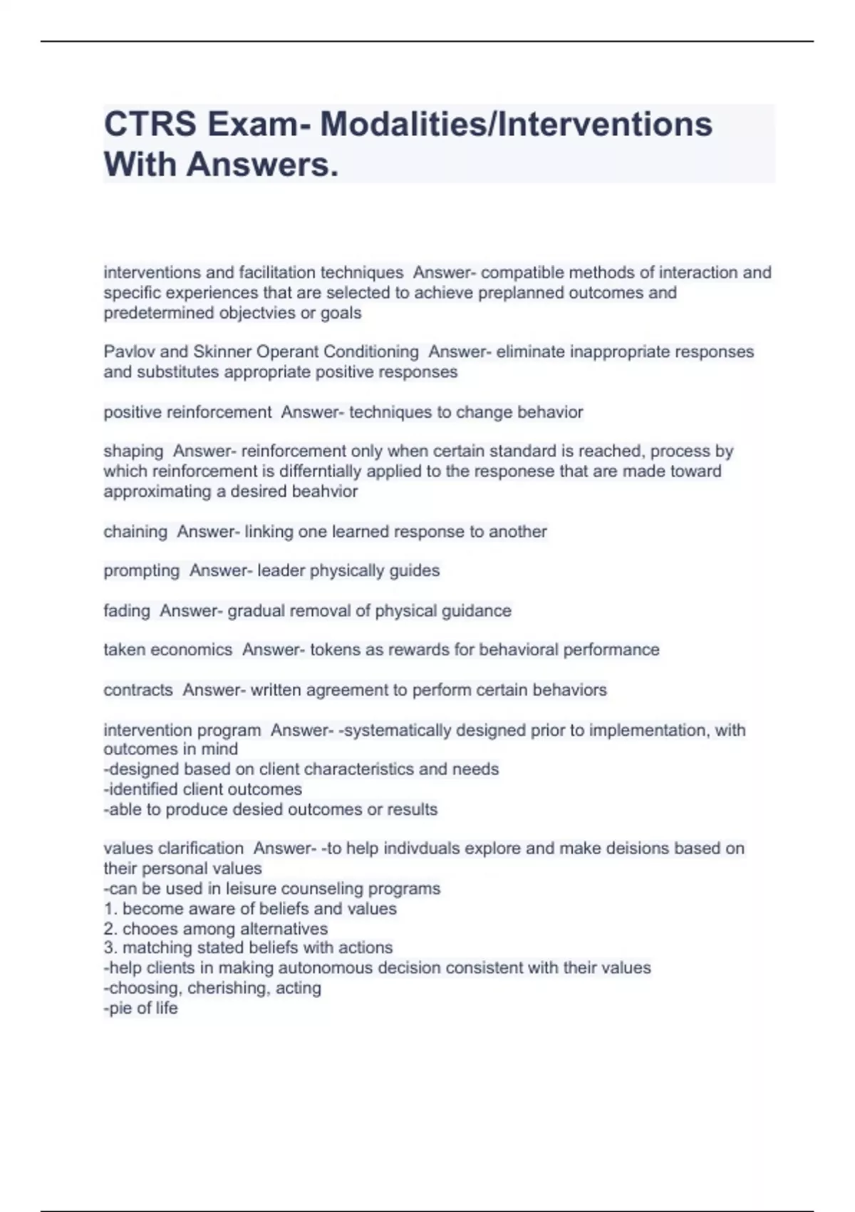 CTRS Exam- Modalities/Interventions With Answers.