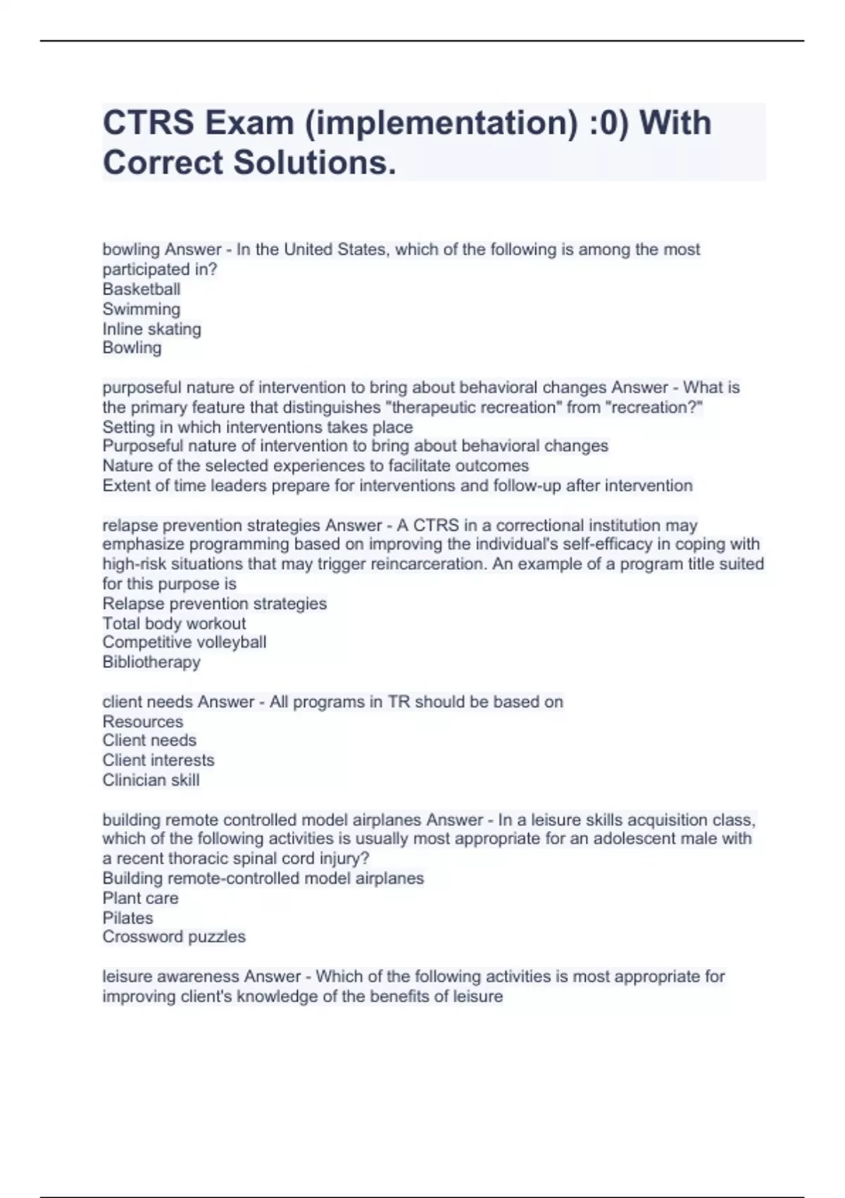CTRS Exam (implementation) :0) With Correct Solutions.