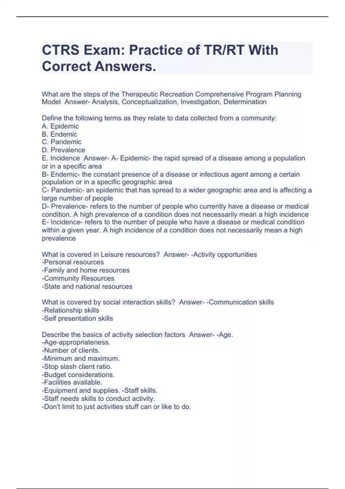 CTRS Exam: Practice of TR/RT With Correct Answers.