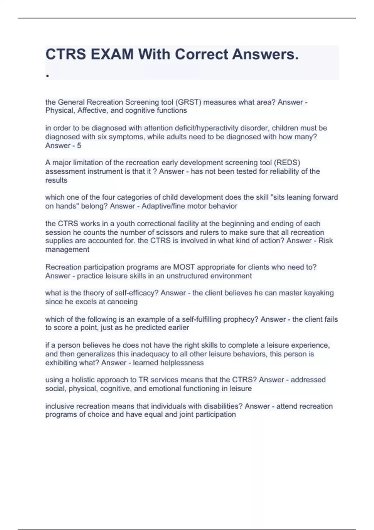 CTRS EXAM With Correct Answers.