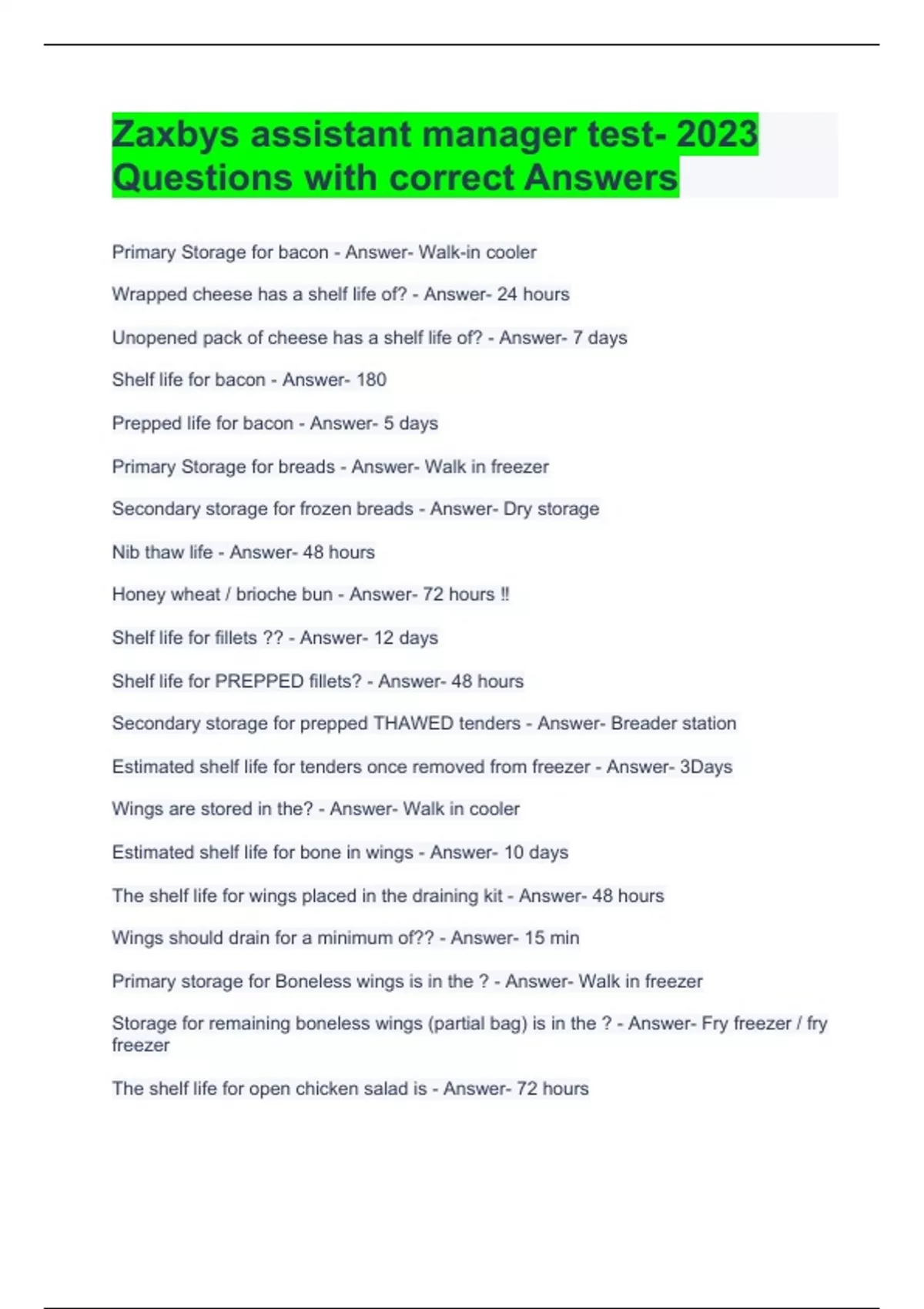 zaxbys assistant manager test 2023 questions with