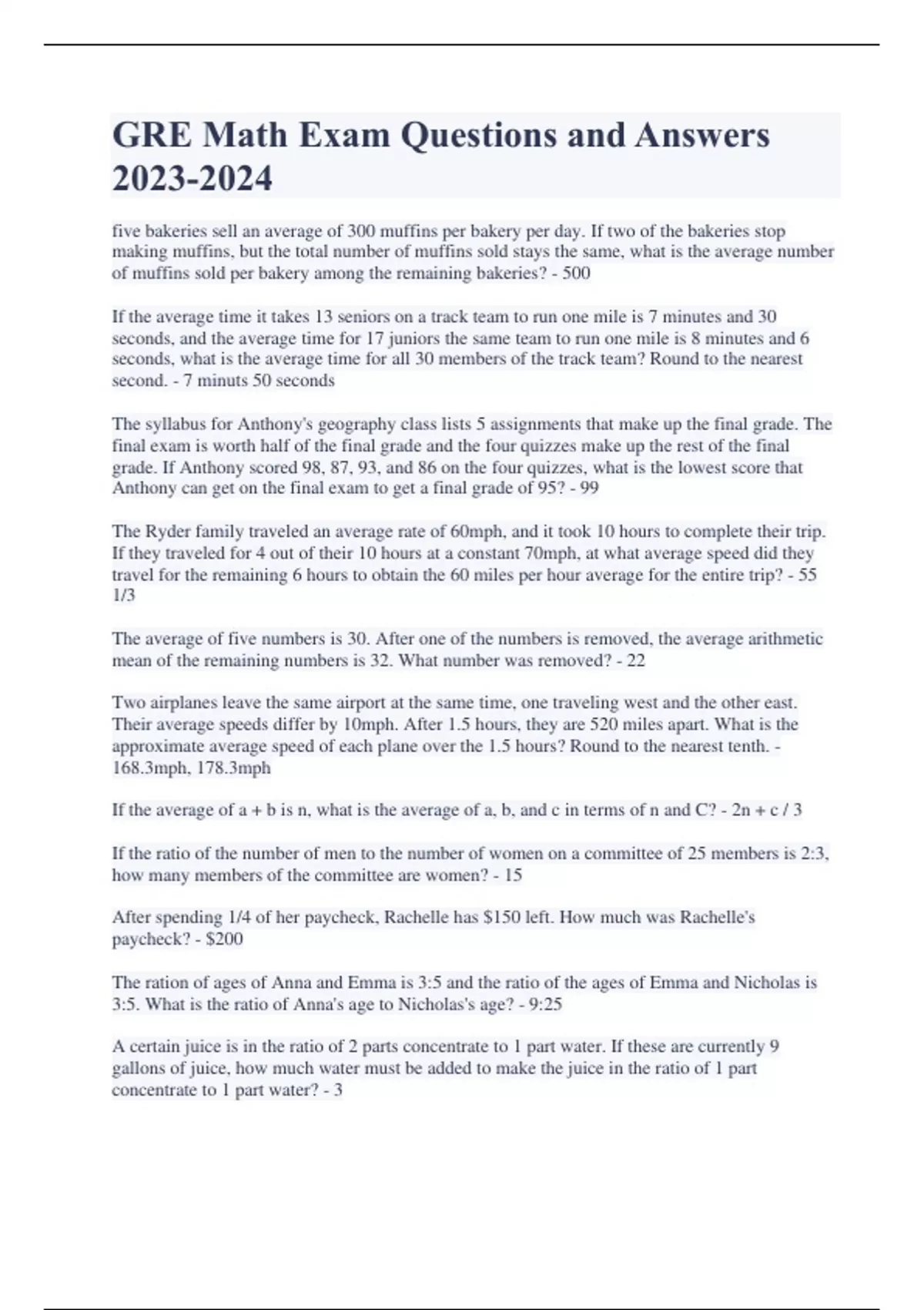 gre math exam questions and answers 2023 2024