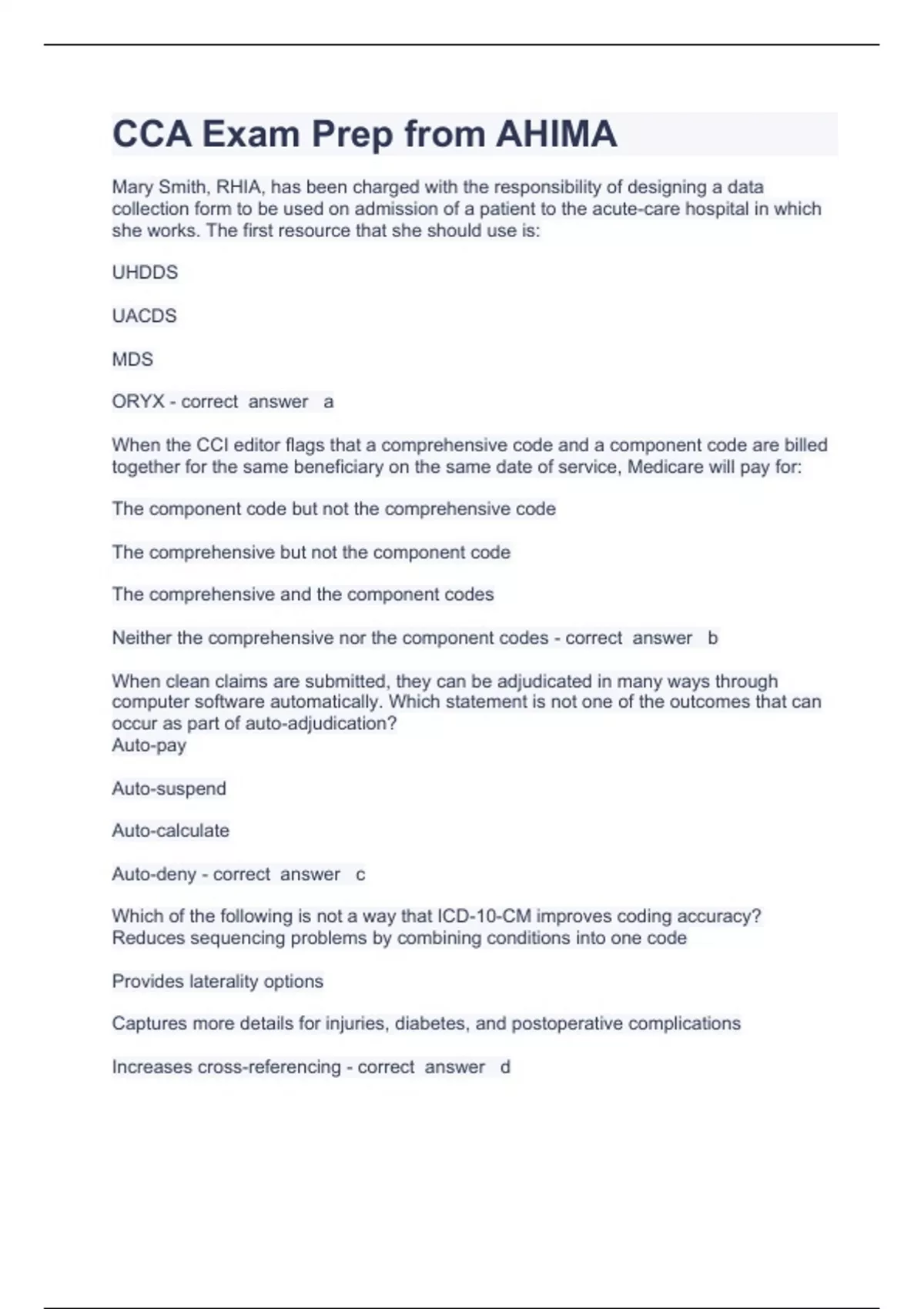 CCA Exam Prep from AHIMA Question and answers already passed 2023