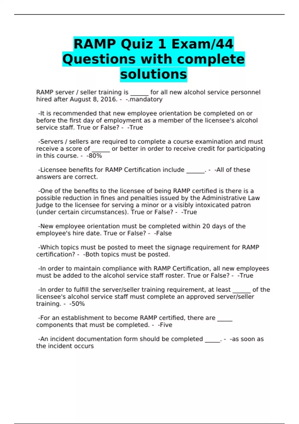ramp quiz 1 exam44 questions with complete soluti